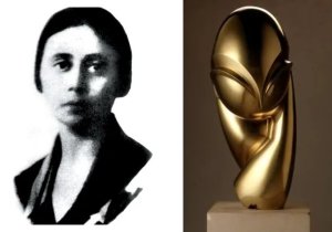 N.R.: „Domnişoara Pogany, cunoscută şi sub numele francez Mademoiselle Pogány, este o statuie clasată în categoria „Tezaur” a Patrimoniului cultural national creată de Constantin Brâncuși în 1913. Numele provine de la pictorița maghiară Margit Pogány, pe care o cunoscuse în 1911. Tânăra i-a servit lui Brâncuși drept model în cele câteva luni cât i-a fost și iubită. Sculptura în bronz are dimensiunile: 43,8 cm x 21,5 cm și 31,7 cm diametru, se găsește la Museum of Modern Art (MoMA), New York.