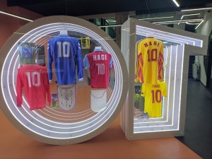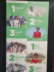 Sunt expuse aici tricourile şi realizările câtorva mari fotbalişti români: Gheorghe Hagi, Rodion Cămătaru, Nicolae Lupescu, Nicolae Dobrin, Anghel lordănescu, Stefan Sames, Marius Lăcătuş, Marcel Răducanu, Costică