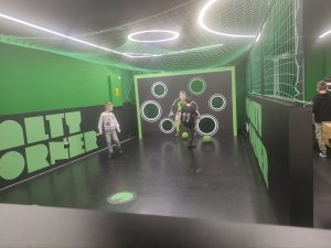 La etajul 5 vizitatorii devin fotbaliști, joacă o miuță sau trag la poartă.