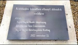 N.R.: „Memorialul pentru victimele care au murit în accidentele de circulație a fost ridicat de către Poliția Județenă Nógrád și Municipalitatea Bátonyterenye lângă drumul principal numărul 21, în Parcul Memorial al Asociației din Bátonyterenye, fiind opera pictorului Zsolt Lencsés (fondator și președinte al Asociației Arttéka, cetățean de onoare al județului Nógrád).