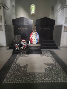 De-a lungul anilor, necropola de aici a primit spre odihnă veşnică pe cei mai mulți dintre membrii familiei Brătianu: Ion C. Brătianu (1821-1891), Florica Brătianu (1862-1865), Ion I.C. Brătianu (1864-1927), Vintilă I.C. Brătianu (1867-1930), Constantin (Dinu) I.C. Brătianu (1866-1950), Pia Brătianu (1841-1920), Sabina Cantacuzino (1863-1944), Tatiana Niculescu-Dorobanțu (1870-1940), Maria Pillat (1868-1945), lon Pillat (1891- 1945), Gheorghe I. Brătianu (1898-1953), loana G. Brătianu (1929-2009), Eleonora Brătianu (1922- 2011).