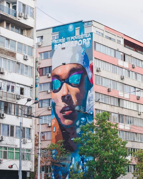 David Popovici le zâmbește în fiecare zi celor care trec pe Șoseaua Ștefan cel Mare (N.R.: la nr.35)! Campionul mondial și european, recordmen mondial la înot, a fost pictat pe peretele unui bloc din capitală într-un proiect al Asociației EDIT și Swet Damage Crew, cofinanțat de Primăria Sectorului 2 București, prin centrul Cultural Mihai Eminescu.
