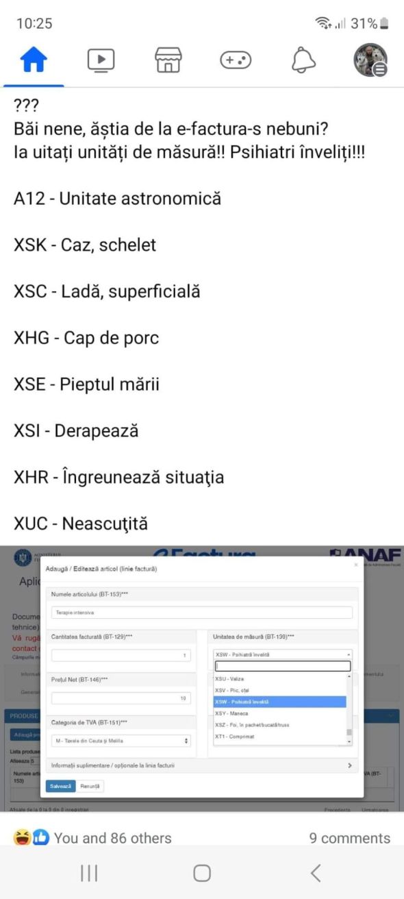 ??Băi nene, ăştia de la e-factura-s nebuni? la uitaţi unităţi de măsură!! Psihiatri înveliți!!!