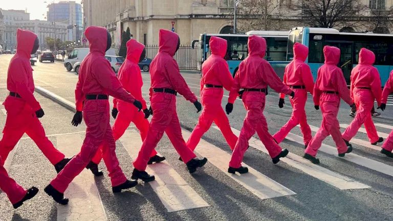 NETFLIX: Gardienii din „Jocul Calamarului” sperie bucureștenii