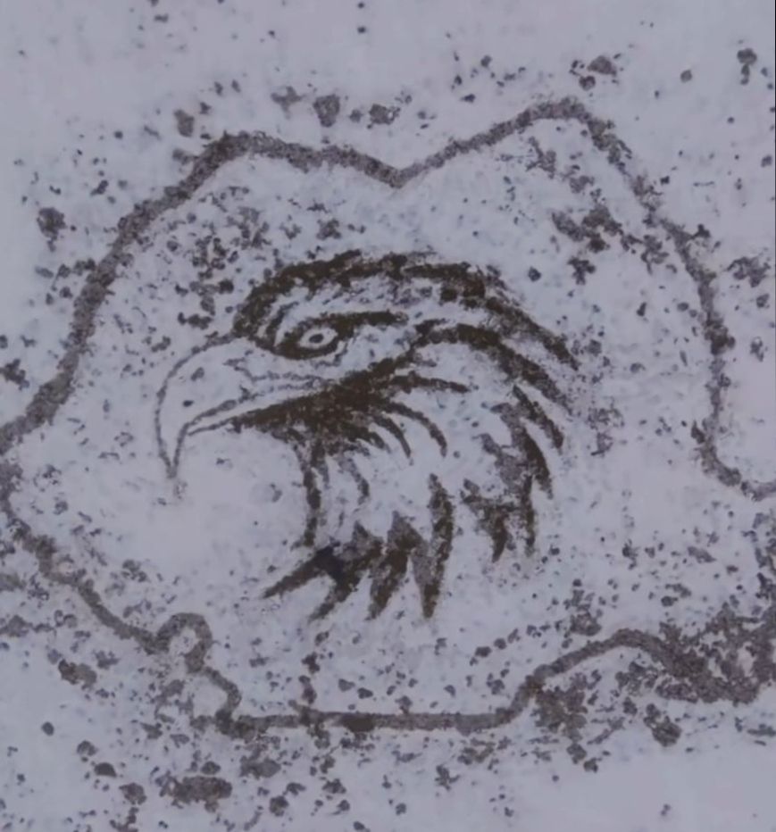 N.R.: Artistul Paul Şerban a lucrat vreme de trei zile la această lucrare, în stilul ‘Land Art’, ce este amplasată pe un deal din spatele casei sale din oraşul Aninoasa. Opera ocupă o suprafaţă de circa 200 de metri pătraţi şi poate fi văzută, în integralitatea ei, doar cu ajutorul unor imagini preluate cu o dronă.