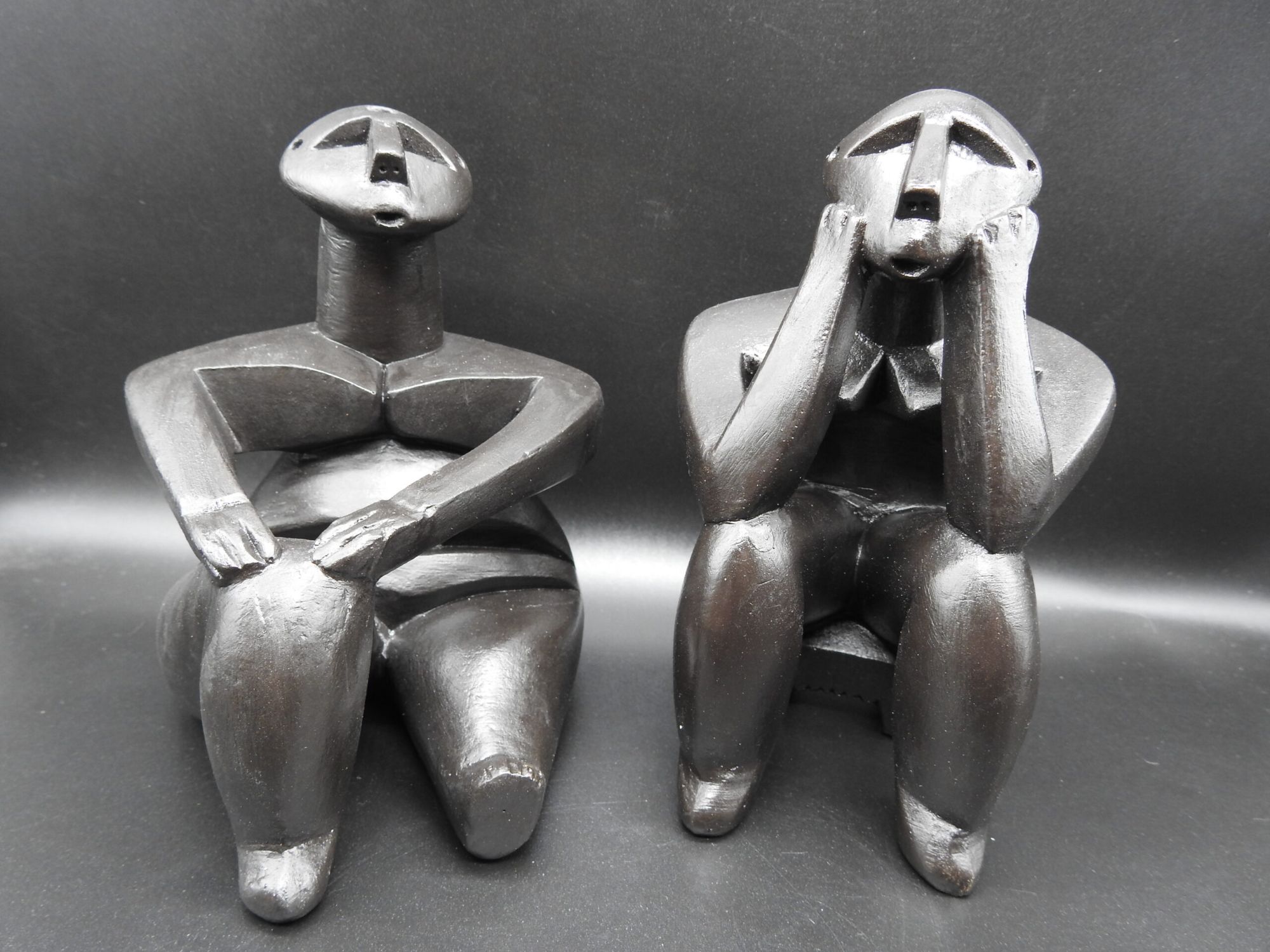 N.R.: De obicei, arta antică din societățile pre-alfabetizate tinde să înfățișeze teme precum vânătoarea și fertilitatea, adesea prezentând figurine feminine fără chip ale lui Venus, cu fese și sâni exagerați. În contrast izbitor, aceste figurine radiază vitalitate și emoție profundă. Unii arheologi au propus o legătură între figură și contemplarea vieții și a morţii, în special având în vedere descoperirea sa într-o necropolă. Postura acestuia transmite în mod inconfundabil o dispoziție meditativă, care a dus la numele său, Gânditorul, inspirându-se din renumita sculptură a lui Rodin cu același nume. Figurinele sunt executate din lut ars și au o înălțime de aproximativ 12 cm. Din 2005, Gânditorul și Femeia șezând sunt expuse la Muzeul Naţional de Istorie a României din Bucureşti.