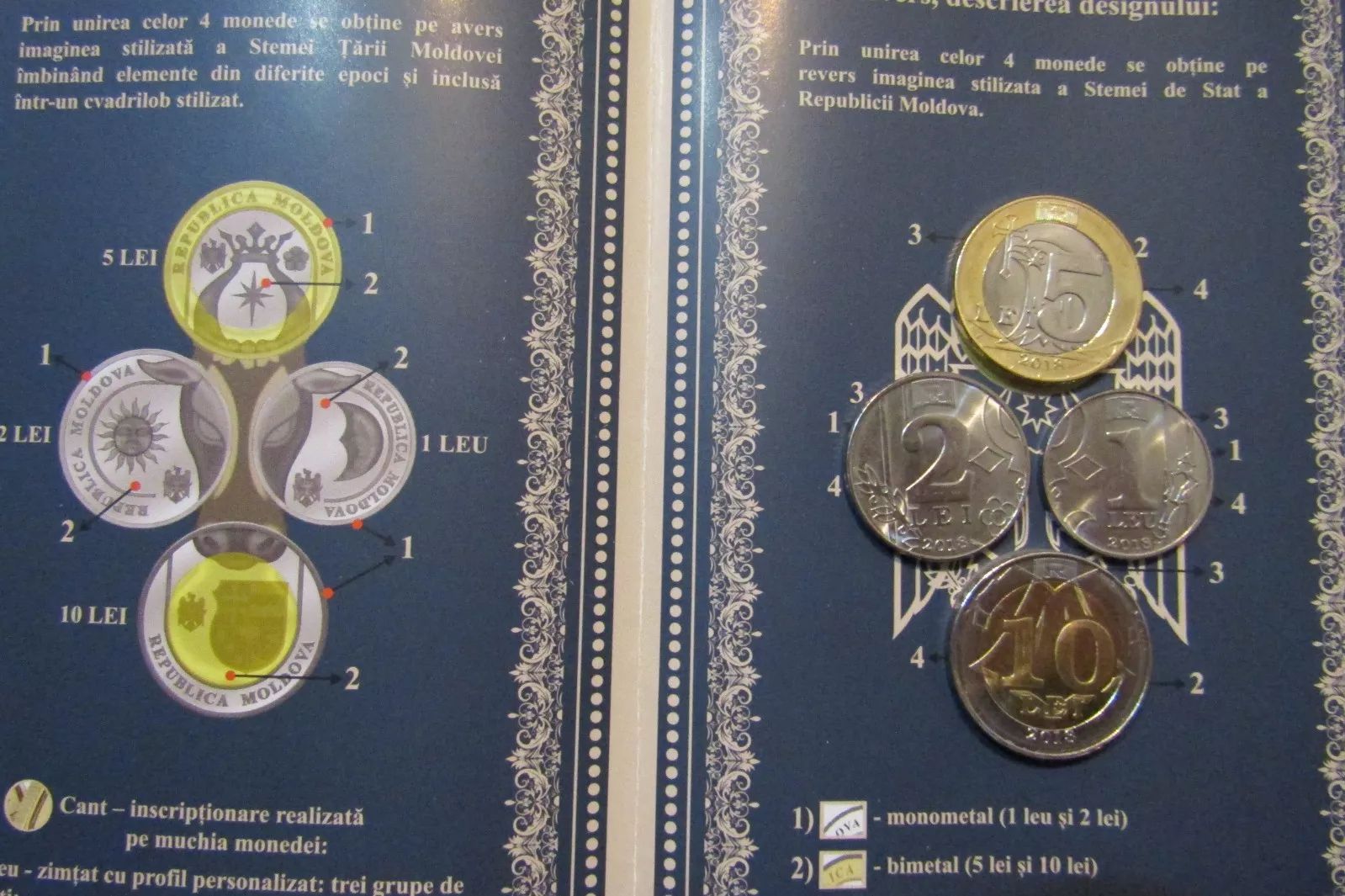 Prin unirea celor 4 monede se obține pe revers imaginea stilizata a Stemei de Stat a Republicii Moldova.