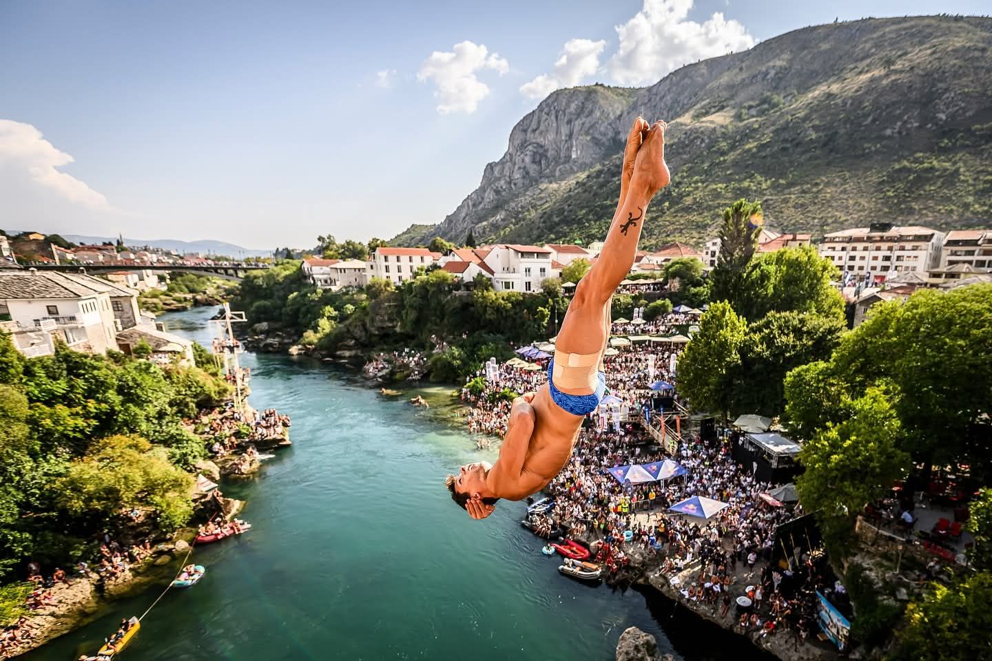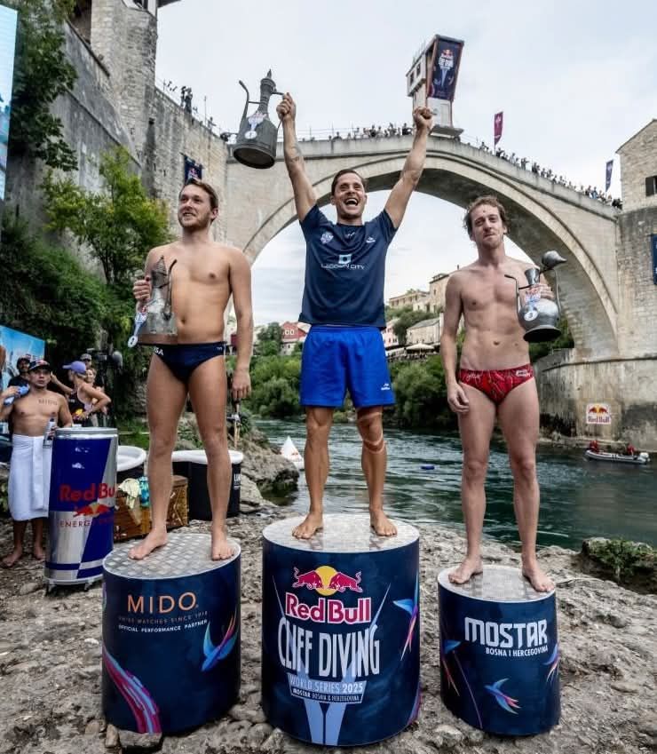 N.R.: Constantin Popovici, victorie spectaculoasă la Mostar, în Seria Mondială Red Bull Cliff Diving – unde cei mai buni 24 săritori de la mare înălţime din lume, la masculin și feminin, au sărit în acest weekend de pe podul Stari Most, din Mostar, în apele repezi ale râului Neretva, în cadrul celei de-a treia etape din Seria Mondială Red Bull Cliff Diving. Constantin Popovici a obținut o victorie spectaculoasă, Aceasta va rămâne în lupta pentru Trofeul King Kahekili, înaintea ultimei etape de la Boston, în Statele Unite.