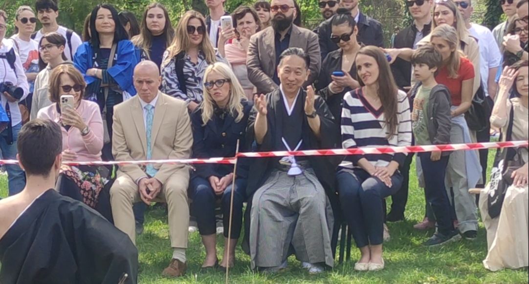 INSIDER: „Hanami, ediția VII-a, sărbătoarea tradițională japoneză a admirării florilor de cireș a avut loc astazi 18 aprilie 2026 în Grădina Japoneză din Parcul Regele Mihai I (Herăstrău) din Bucureşti. Excelența Sa, Ambasadorul Japoniei în România, Takashi Katae, a participat la festivități, împreună cu doamna ministrul de externe Oana Țoiu. Marele absent președintele Nicușor Dan, nelipsit în anii în care a condus Primaria Generală a Capitalei. Programul evenimentului a inclus demonstrații culturale precum ceremonia ceaiului, ikebana, karate și tobe japoneze.’