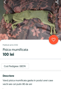 INSIDER: „Din categoria Ce mai vând romanii pe OLX am găsit anunțul: „Vând pisică (Sphinx) mumificată găsita în podul unei case vechi. Are cel puțin 80 de ani. Preț 100 lei” SURSA