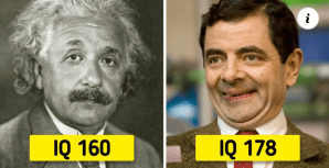 N.R.: Există vedete la Hollywood care se pot compara cu unii absolvenți de la Harvard. Sharon Stone (IQ 154) plasează pe actriță în cei 0,1% dintre cei mai destepți oameni din lume. A mers în clasa a II-a când avea doar 5 ani. Rowan Atkinson (IQ 178). Spre deosebire de personajul care l-a făcut celebru, inimitabilul Mr. Bean, Rowan a avut rezultate formidabile la şcoală. Înainte de a-și începe cariera în actorie a studiat ingineria la Universitatea Newcastle, s-a înscris la Universitatea Oxford pentru a urma un Master of Science şi are chiar şi diplomă de doctorat. DETALII