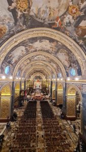 Aşa au apărut şi picturile lui Caravaggio, proaspăt fugit din Roma în Malta și devenit el însuşi Cavaler de Malta. Catedrala are câte o capelă interioară pentru fiecare naţionalitate a cavalerilor de Malta, respectiv capela germană, capela franceză, capela Provence, capela Auvergne, capela Castilia, capela Aragon, capela italiană, dar şi o capelă dedicată Sfintei Maria din Filerimos (fiind biserica la care cavalerii se închinau în locul lor de origine, Rhodos-ul). Pe scurt, este un loc copleșitor de frumos, dar mai ales cu o energie care nu se poate explica, trebuie simțită.”
