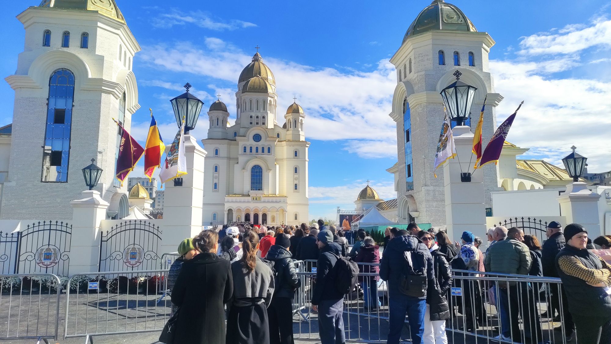 INSIDER: „Catedrala a fost sfințită pe 26 octombrie 2025, iar la slujbă s-a intrat doar pe bază de invitație (majoritatea fiind cei care huiduiau Catedrala și strigau că „Dumnezeu preferă lemnul și spațiile mici”). Restul neamului a participat dincolo de zidurile împrejmuitoare (a ascultat liturghia și îngenuncheat pe asfalt, ca în Pandemie când nici atunci nu avea voie în biserici), dincolo de micul ecran ori pe la vreun post de radio. 28 octombrie 2025 – Pentru păcătoșii fără invitație, 6 ore la coadă pe Golgota pentru a intra în Catedrală. Se vizitează non-stop până la sfârșitul lunii.