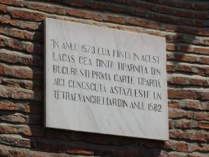📖 În 1582 apar aici primele cărţi tipărite în Bucureşti: două Tetraevangheliare şi o Psaltire (din care se păstrează numai un fragment, în Biblioteca Naţională din Sofia), sub îndrumarea monahului Lavrentie și a ucenicului Iovan.