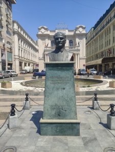 INSIDER: „În piațeta din fața teatrului Odeon, din București pe Calea Victoriei, pe artera al cărei nume vine de la victoria contra turcilor, e plasat un bust al lui Mustafa Kemal Atatürk (n. 1881, Salonic, Imperiul Otoman – d. 10 noiembrie 1938, Beşiktaş (d), Turcia) a fost un militar şi politician turc, născut în Macedonia, fondatorul şi primul președinte al Republicii Turcia ales de Marea Adunare Națională a Turciei pe 29 octombrie 1923. În 1934 Parlamentul i-a atribuit supranumele de Atatürk (Părintele Turcilor) pentru rolul său esenţial în construcţia noului stat turc, aplicând un set revoluţionar de reforme al căror scop a fost modernizarea vieții sociale, economice, politice şi culturale.