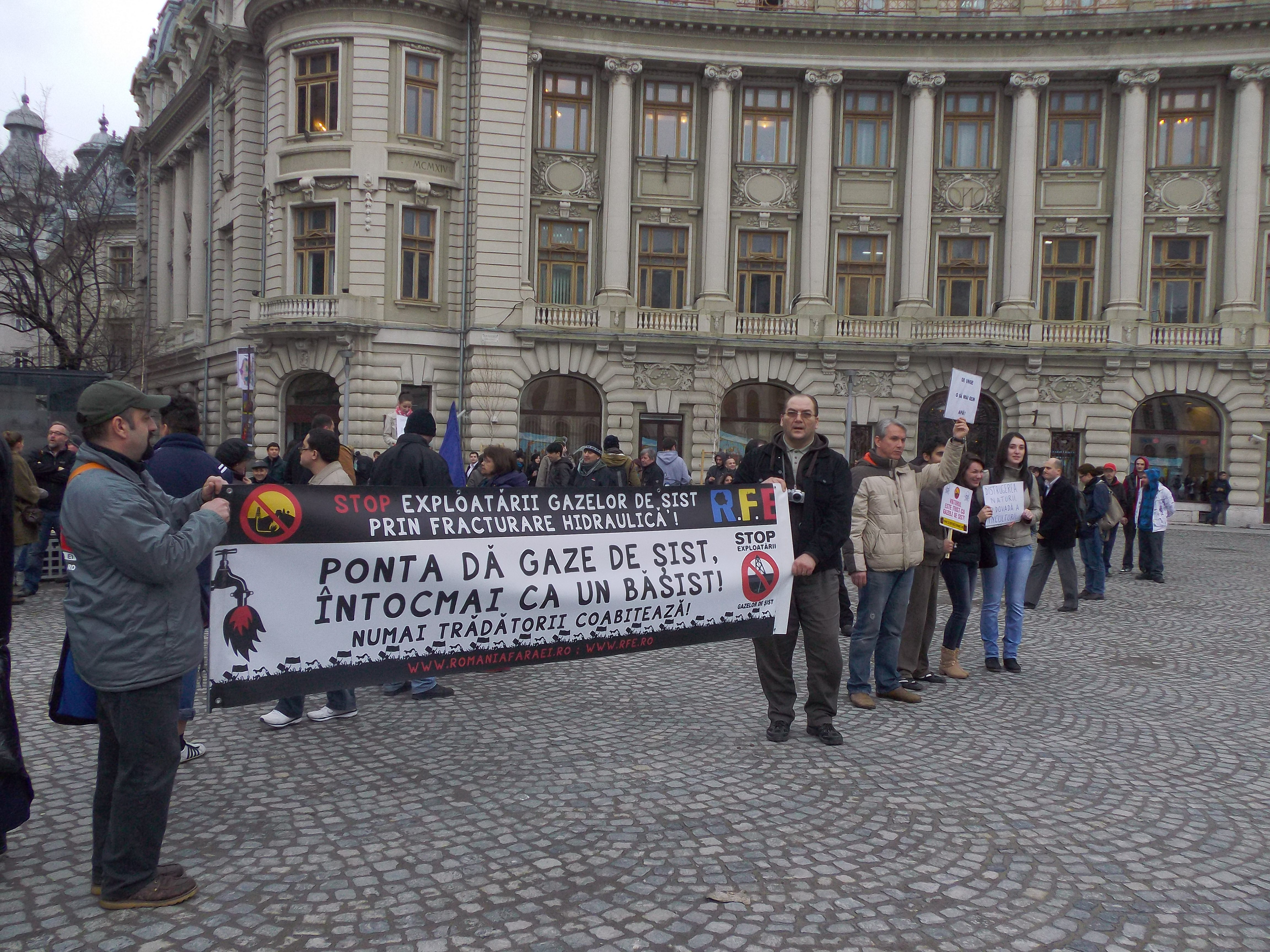 STOP CHEVRON: „Corporaţia face legislaţia”. „Nu ne violaţi pe şist”. „We can’t drink money”