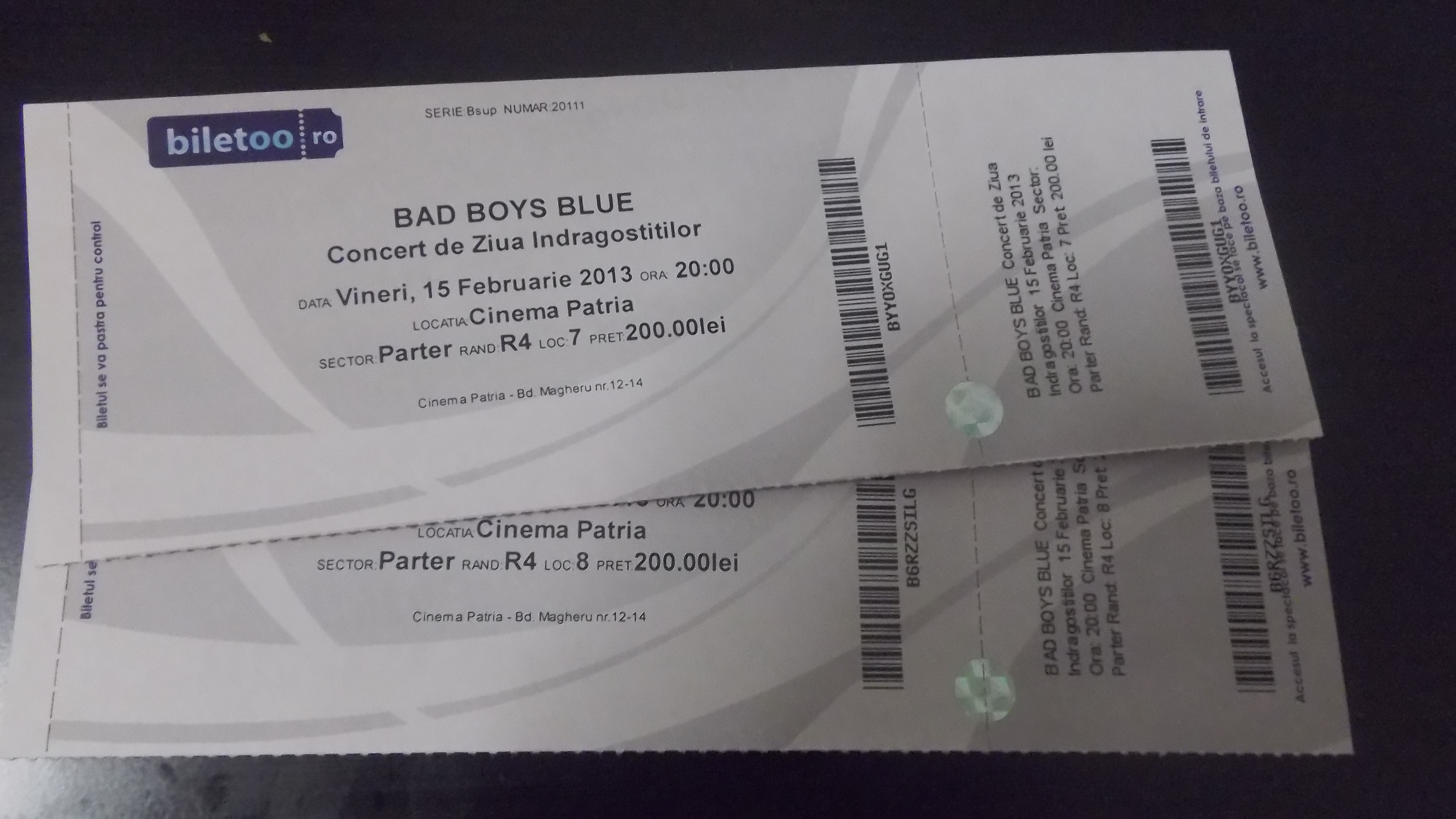 INSIDER: „Trupa simbol a pop dance-ului anilor ’80, Bad Boys Blue, a concertat ieri la Bucureşti la Cinema Patria. Dar surpriză! Pe scenă nu au apărut cei trei băieţi binecunoscuţi, ci doar John McInerney împreună cu două domnişoare backing vocals. Aşadar, din trupa înfiinţată în 1984 a mai rămas un singur Boy care nu-i Bad, dar e încă Blue! Preţul biletelor a fost cuprins între 100 şi 200 lei, iar distracţia a meritat pentru toţi adolescenţii anilor ’80-‘90 care au dansat ca-n tinereţe!