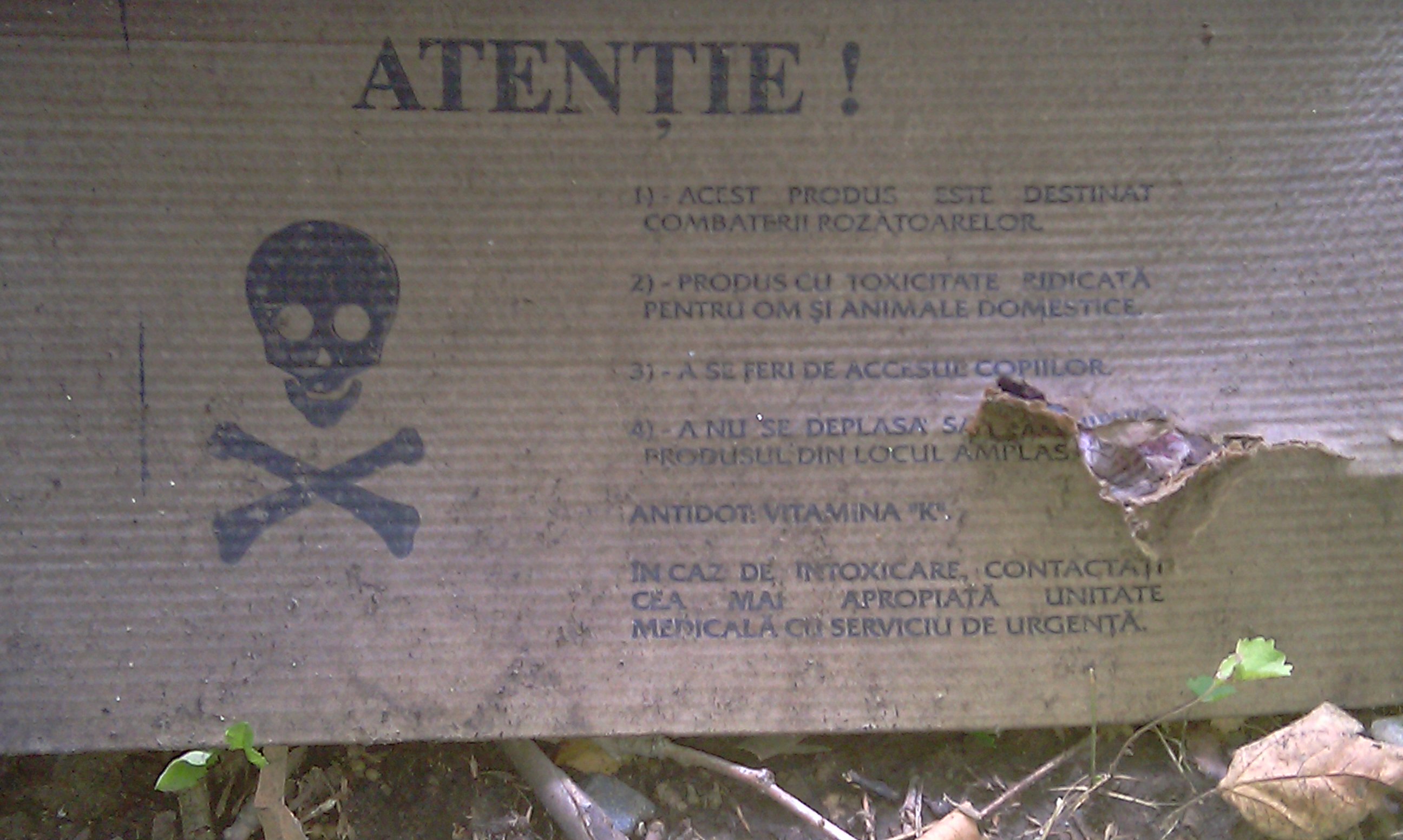 Teoretic, „pliculeţele roz” sunt bagate în cutii triunghiulare de carton, de culoare maro, cu un orificiu pentru rozătoare. Practic, aceste pliculeţe sunt deseori aruncate la nimereală prin iarbă, punând în pericol viaţa copiilor şi animalelor de companie care pun gura pe aceste pliculeţe! În funcţie de cantitatea ingerată, otrava acţionează lent, până la 1-2 săptămâni, iar semnele de hemoragie internă apar brusc, prin scaune cu sânge! Imediat când aţi observat intrarea în contact cu aceste pliculeţe, mergeţi de urgenţă la un medic. Singurul antidot care preîntâmpină sau opreşte hemoragia este Vitamina K (fiole de Fitomenadion). …Vă spun din experienţă!”