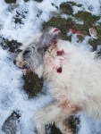 În seara asta în jur de ora 17 am auzit trei focuri de armă. Eu eram la o distanță de aproximativ 500 de metri puneam fân la oi, de locul unde domnul Mureșan a oprit mașina, în drumul lui de a duce porumb la animalele pădurii. Și mi-a împușcat 2 câini. Amândoi câinii aveau jujeu la gat, dar la una dintre ele care era mai aproape a sărit din mașina și l-a luat. În total am 7 câini care au fost împușcati de acest domn responsabil cu paza vânatului…dar nu și a culturilor agricole și pașunilor care au ajuns sa fie invadate de mistreți!