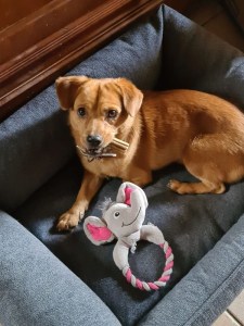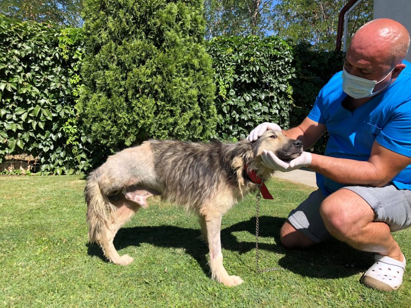 RAMBO este un alt cățel cu un destin nefericit. Născut pe străzi sau poate abandonat de la o vârstă fragedă, el a crescut fiindu-i frică de oameni și considerându-i agresori de temut. Era așa înspăimântat de oameni încât, când medicul nostru veterinar a încercat să se apropie de el să vadă de ce șchiopăta Rambo, a plonjat într-o baltă amenajată pentru pescuit din apropiere pentru a se ține la distanță. Am aflat mai târziu ce se întâmplase cu Rambo. Încercase să se adăpostească în ferma cuiva și a fost atacat și alungat de câinii proprietarului care își făceau datoria de animale de pază. Așa a ajuns Rambo să aibă o lăbuță rănită și cu o infecție urâtă care îi punea mobilitatea și viața în pericol. Norocul său a fost că veterinarul nostru nu se lasă cu una cu două. Ne-a alertat și, înarmați cu tranchilizant, am pornit în căutarea lui. Am reușit să îl găsim și să îi oferim îngrijiri medicale, dar destinul lui Rambo a funcționat pe sistemul “una caldă una rece.”