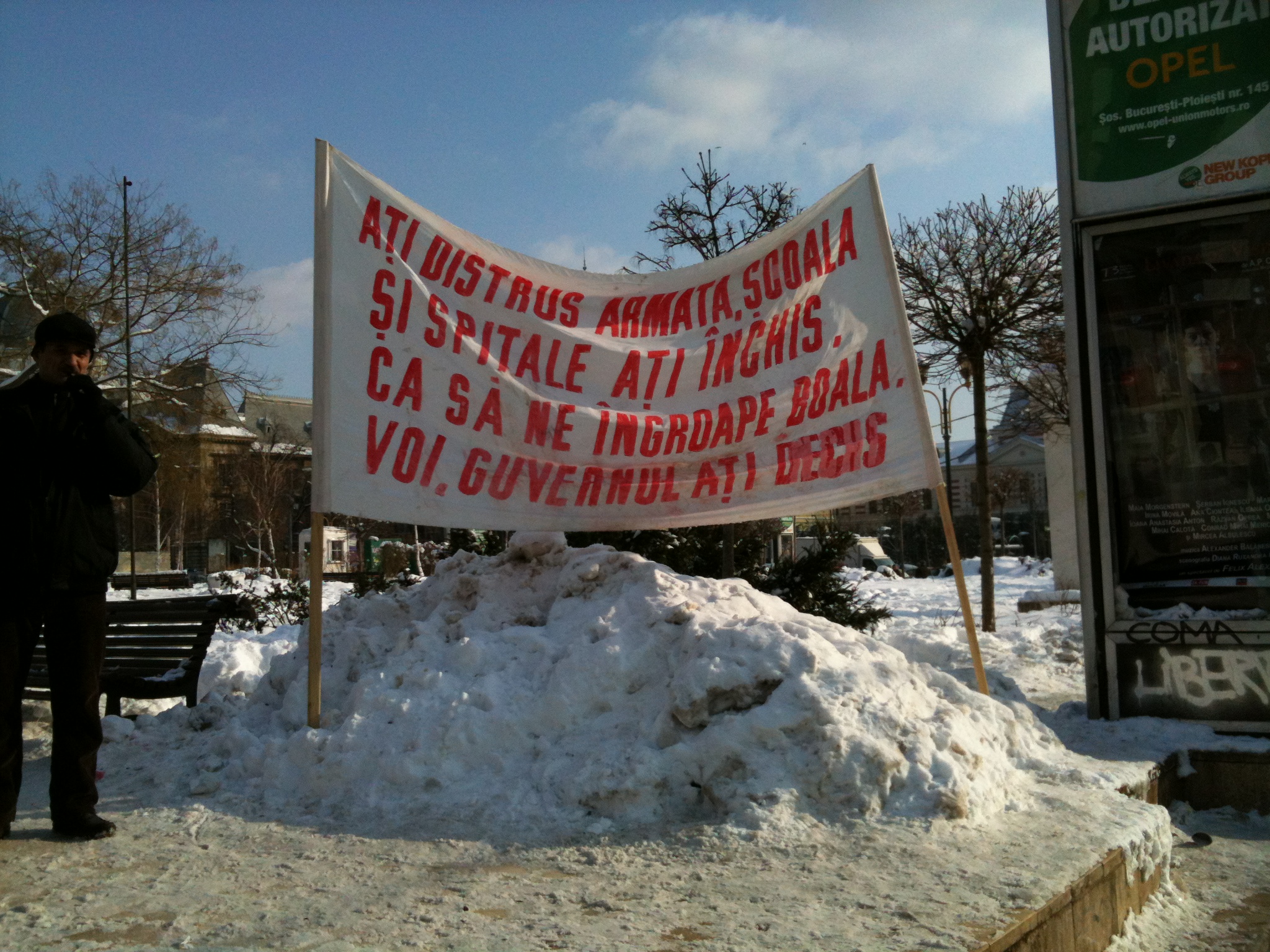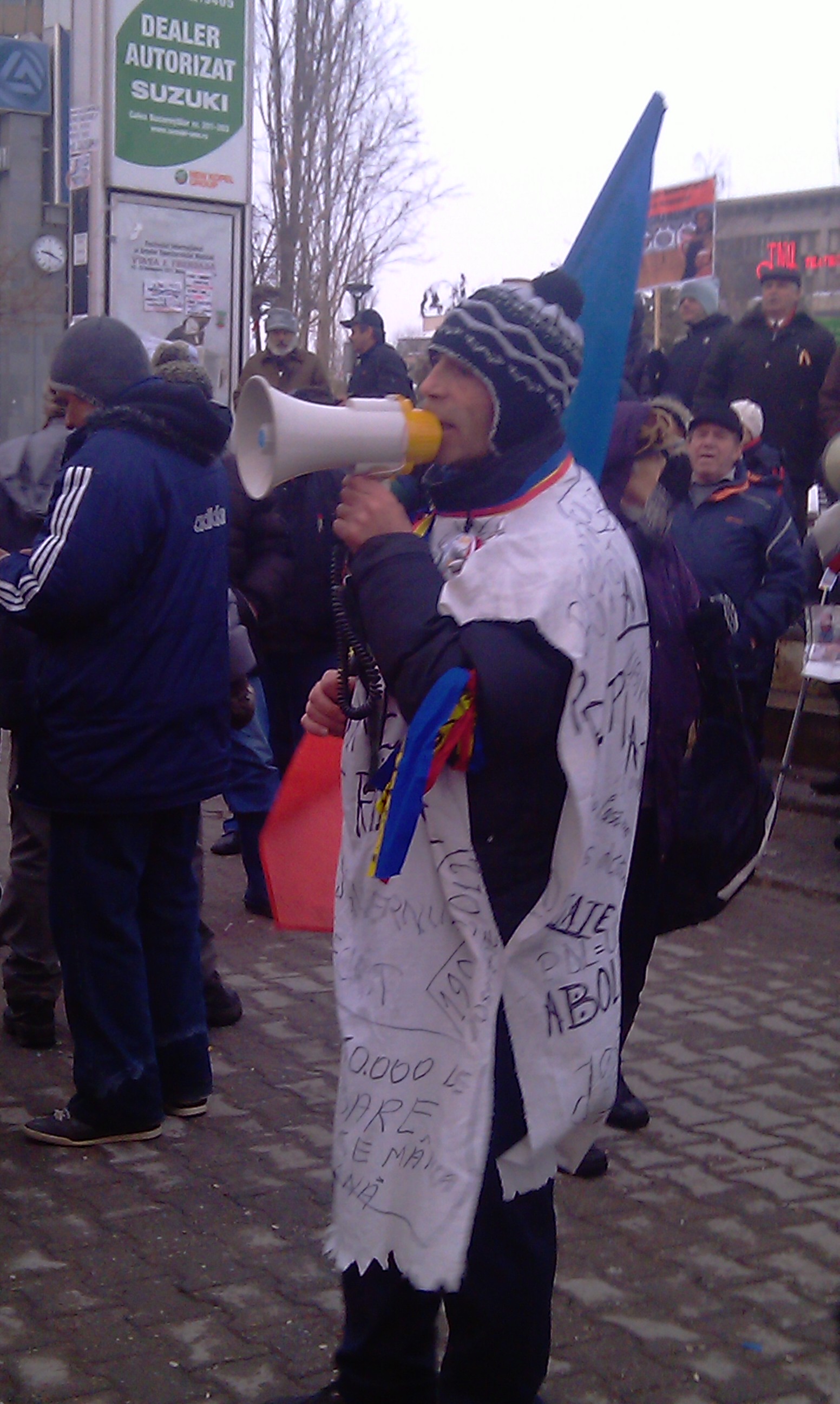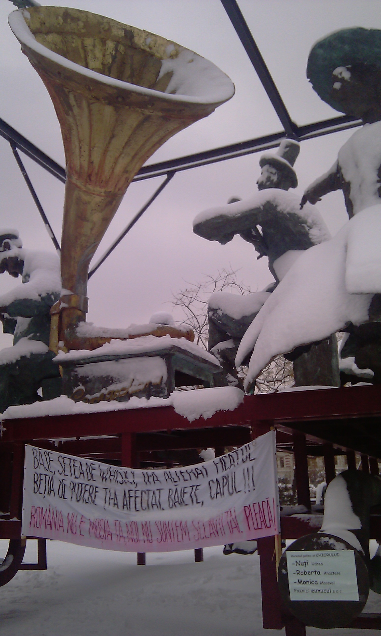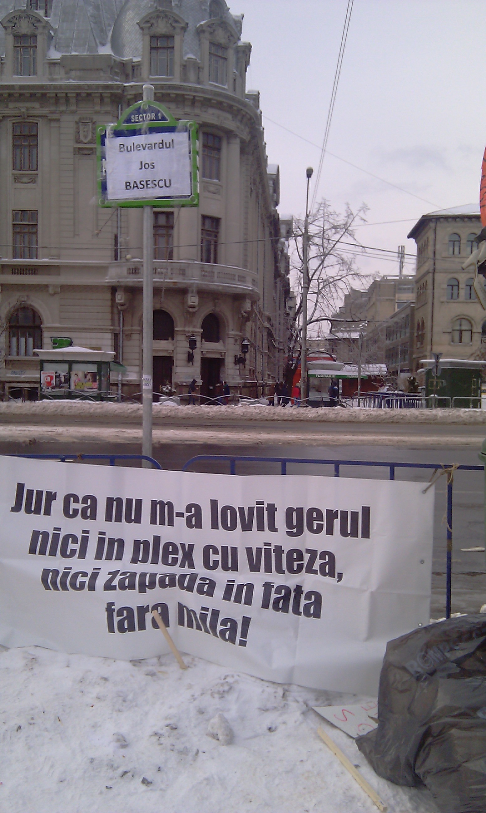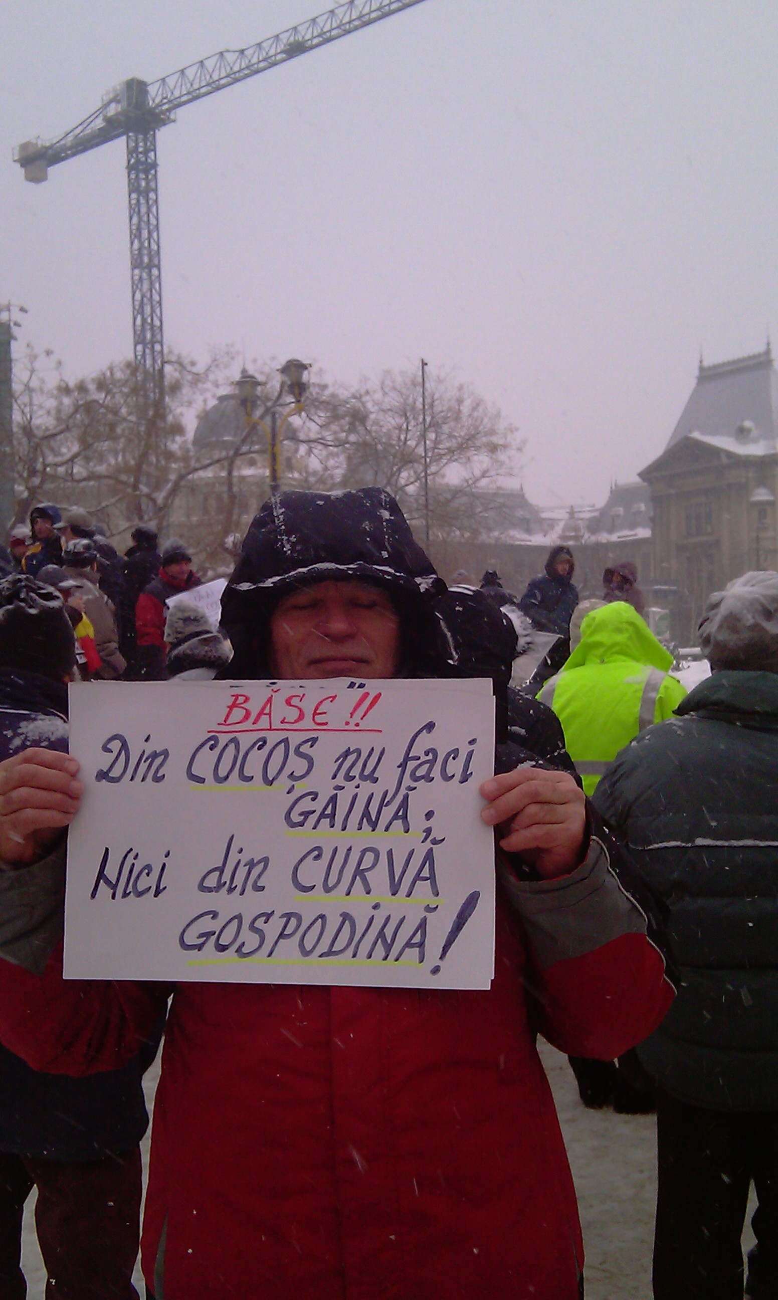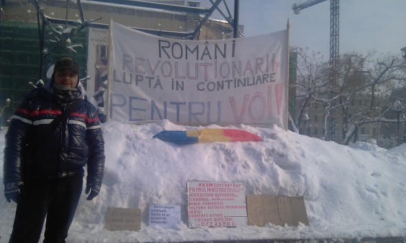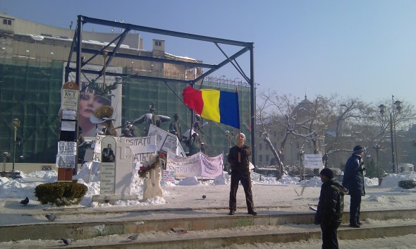 INSIDER: „Astăzi se împlinesc 33 de zile de proteste în Piaţa Universităţii. Cel puţin un tânăr va fi acolo şi în următoarele 33 de zile. În timp ce toată lumea se grăbea către birourile încălzite, un singur tânăr se întrepta către Piaţa Universităţii. Astăzi, şi-a început protestele la ora 7 dimineaţa. Povestea lui este atât de scurtă, de tristă şi de cunoscută încât este mai sugestivă decât orice slogan strigat vreodată în acest loc. Mi-a spus atât: „Am crescut la casa de Copii din Sinaia. Am 35 ani. Nu am casă, nu am serviciu, nu am nimic…Voi sta aici până la sfârşit!” L-am întrebat de ce protestează singur şi mi-a răspuns simplu – „Nu ştiu unde sunt bucureştenii”. Nu mi-a spus cum se numeşte, aşa că îmi voi permite să-l numesc „Gavroche de România” al Revoluţiei 2012.”