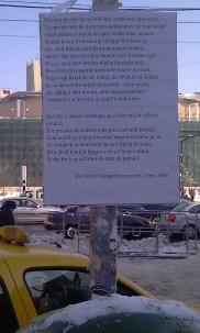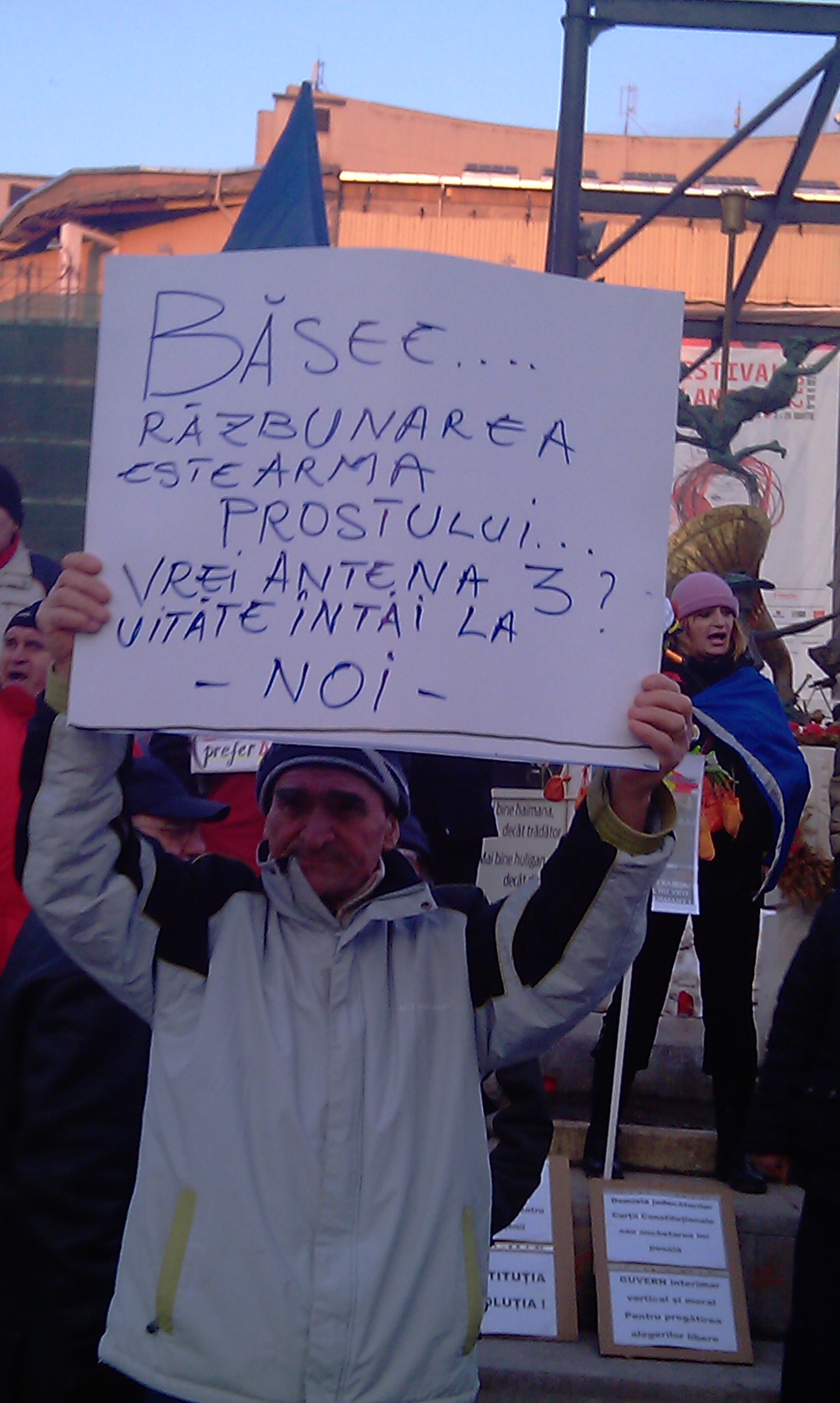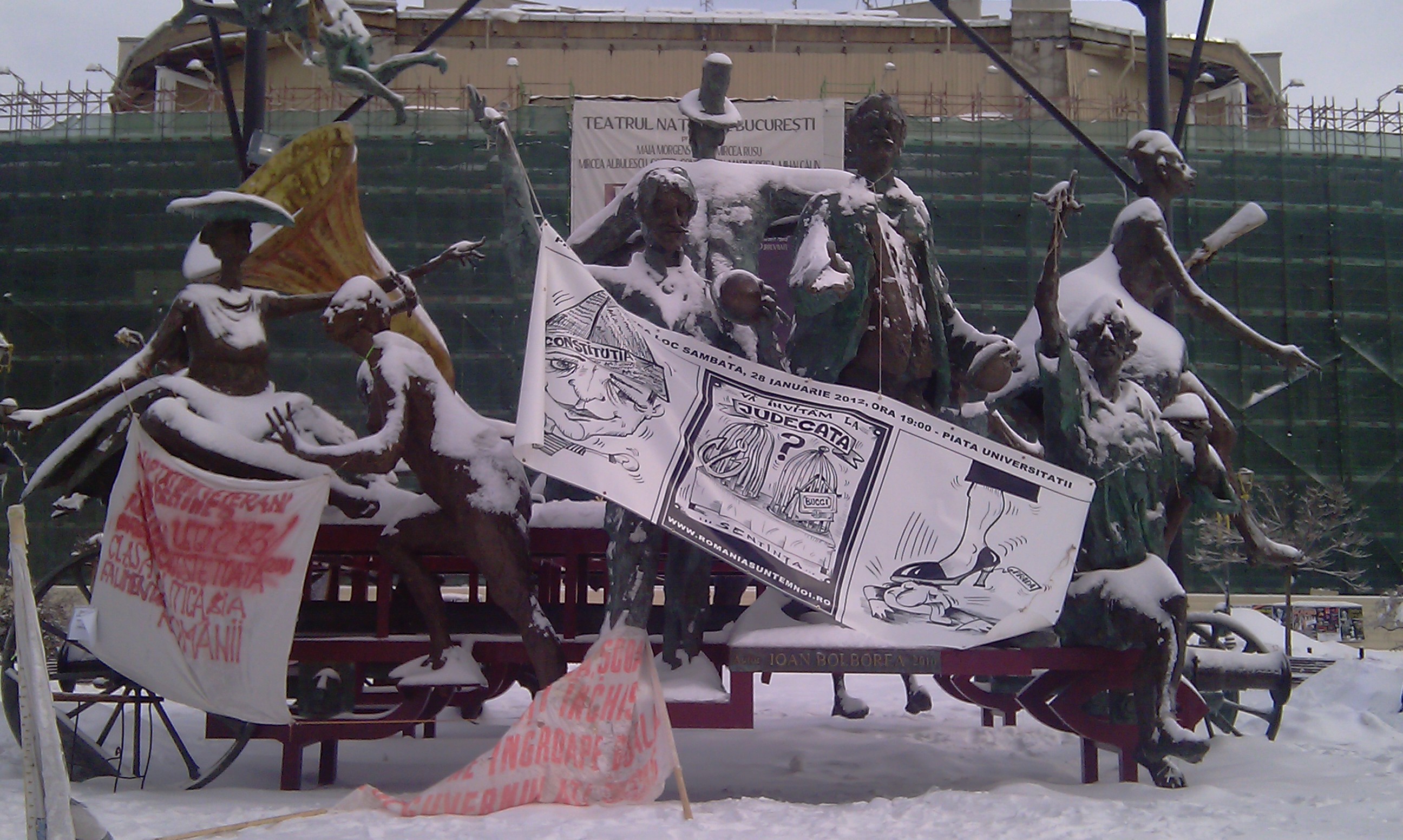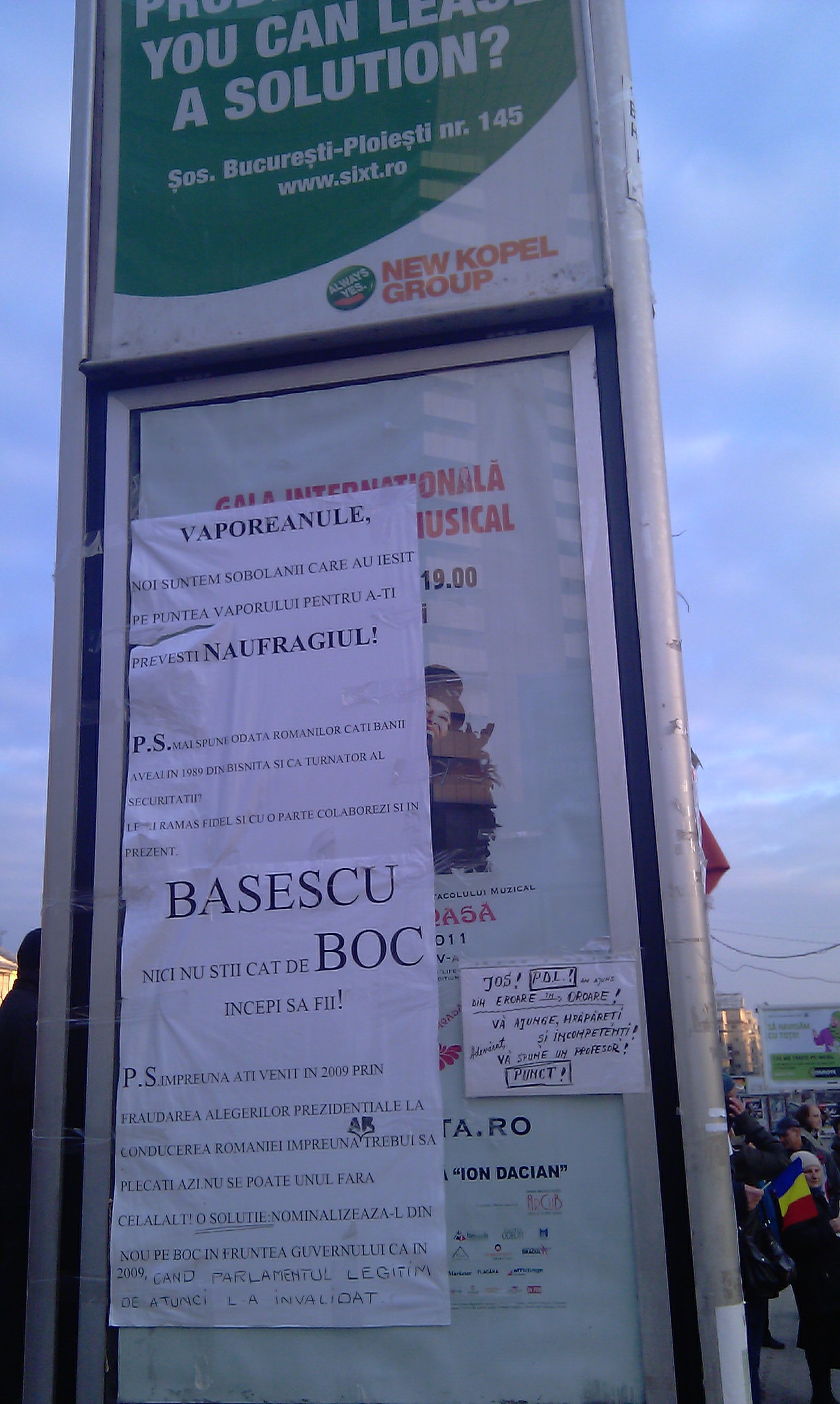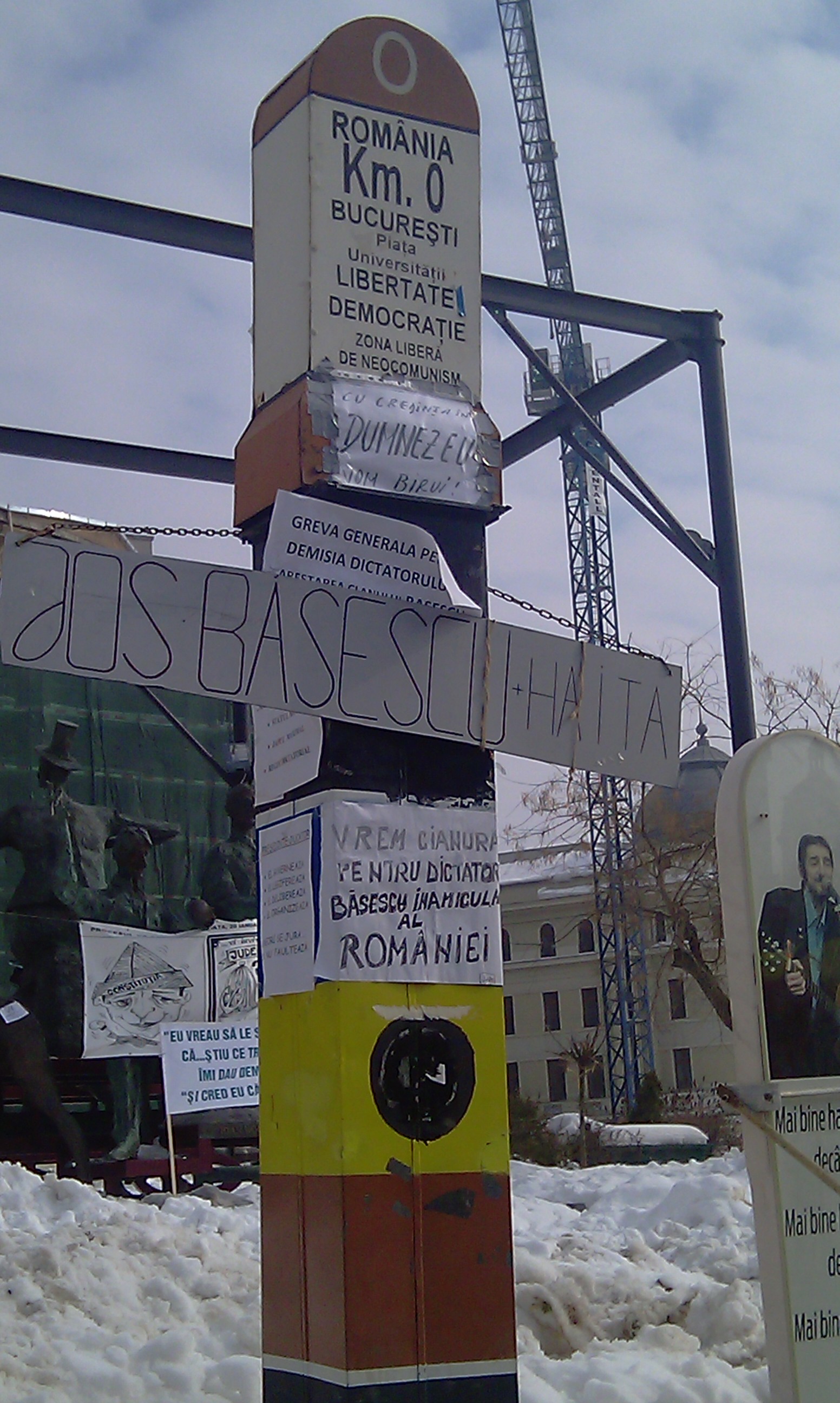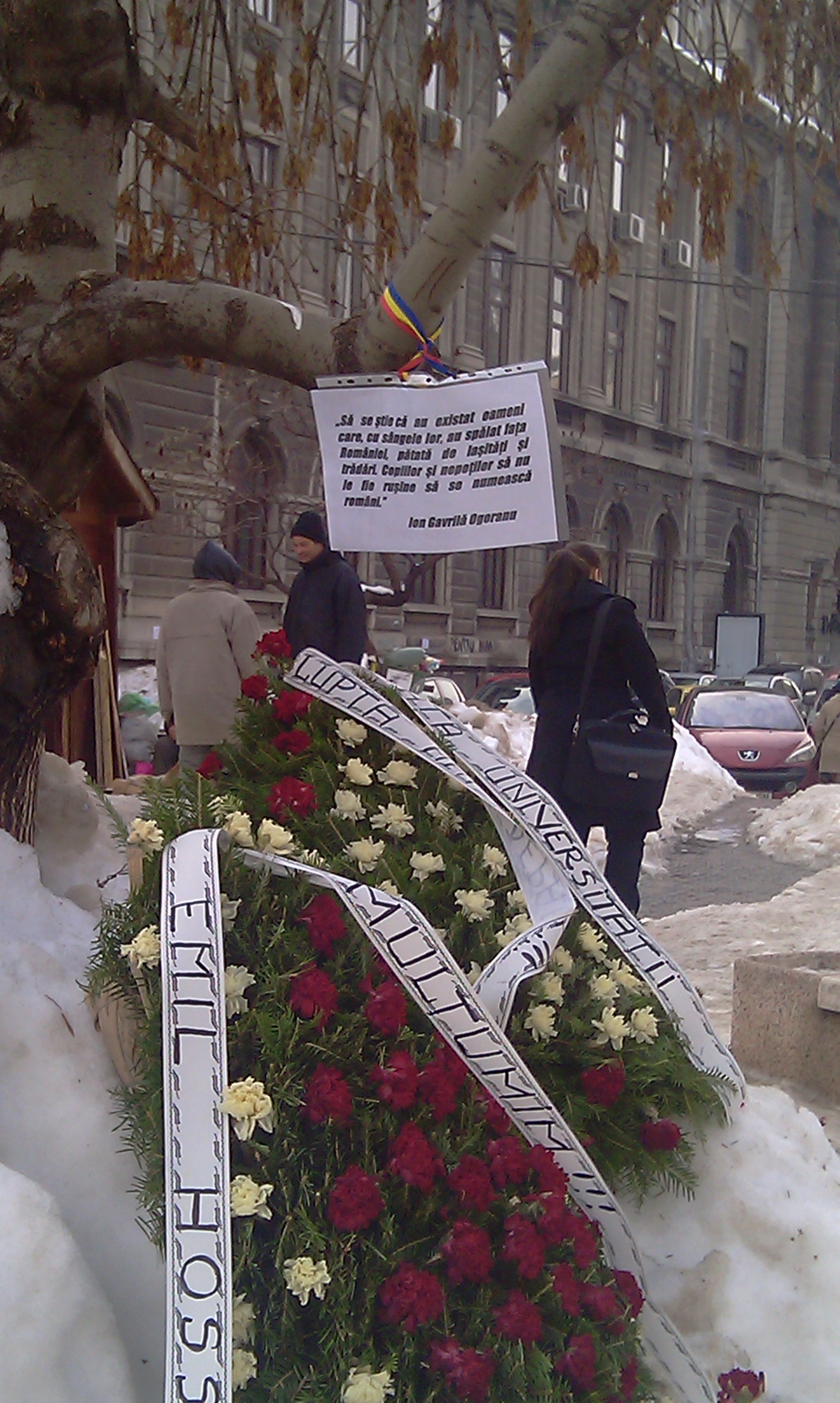 INSIDER: „Astăzi se împlinesc 33 de zile de proteste în Piaţa Universităţii. Cel puţin un tânăr va fi acolo şi în următoarele 33 de zile. În timp ce toată lumea se grăbea către birourile încălzite, un singur tânăr se întrepta către Piaţa Universităţii. Astăzi, şi-a început protestele la ora 7 dimineaţa. Povestea lui este atât de scurtă, de tristă şi de cunoscută încât este mai sugestivă decât orice slogan strigat vreodată în acest loc. Mi-a spus atât: „Am crescut la casa de Copii din Sinaia. Am 35 ani. Nu am casă, nu am serviciu, nu am nimic…Voi sta aici până la sfârşit!” L-am întrebat de ce protestează singur şi mi-a răspuns simplu – „Nu ştiu unde sunt bucureştenii”. Nu mi-a spus cum se numeşte, aşa că îmi voi permite să-l numesc „Gavroche de România” al Revoluţiei 2012.”