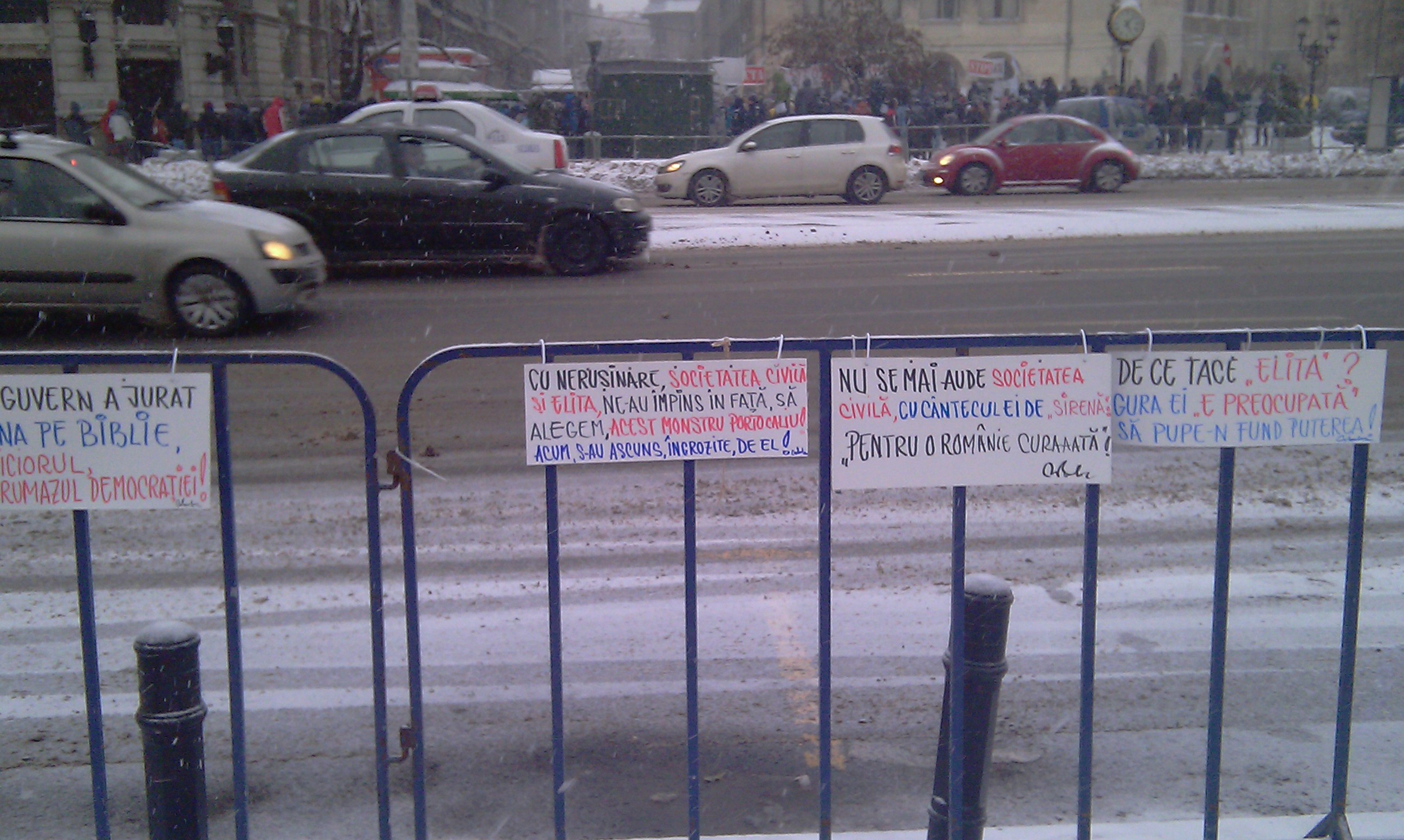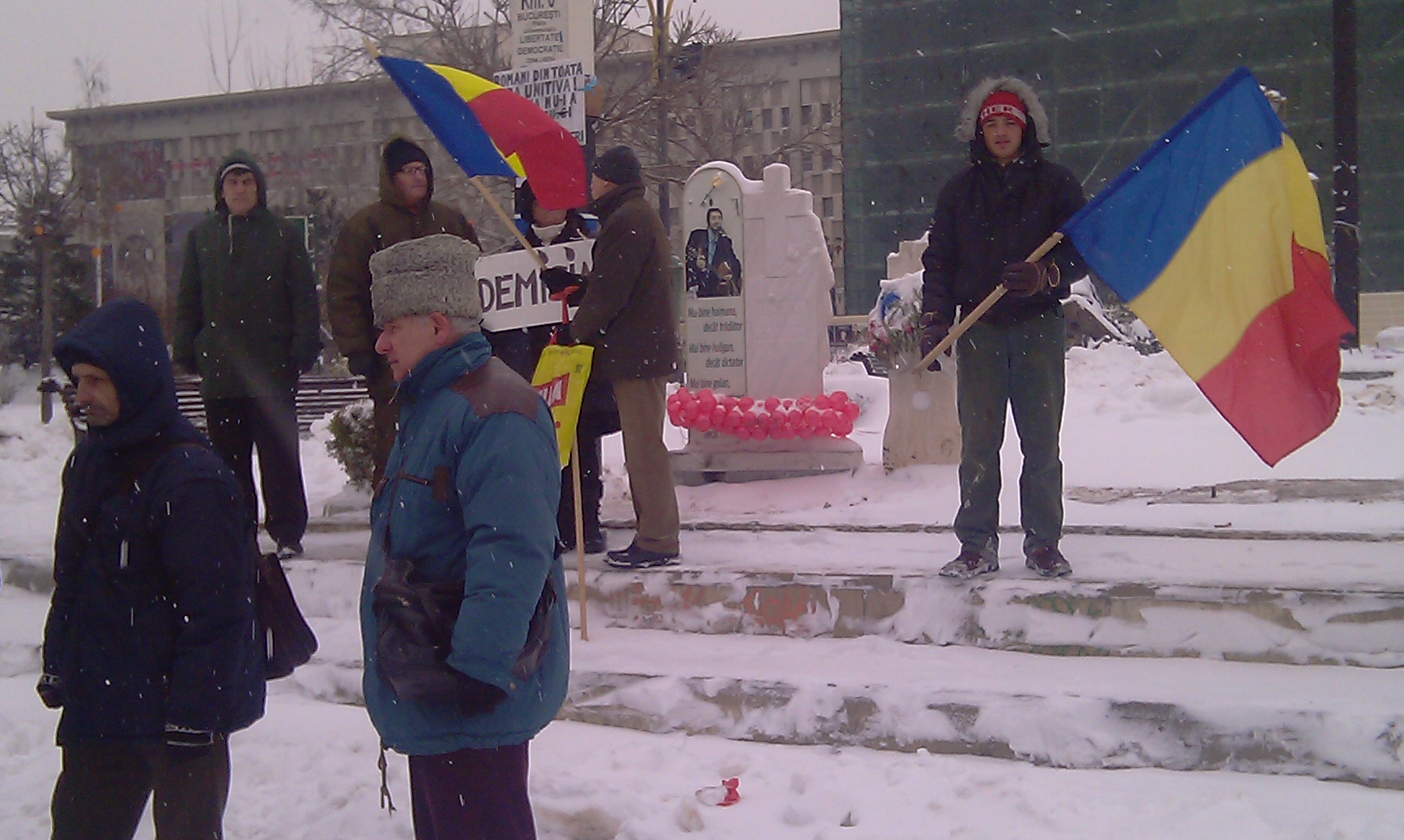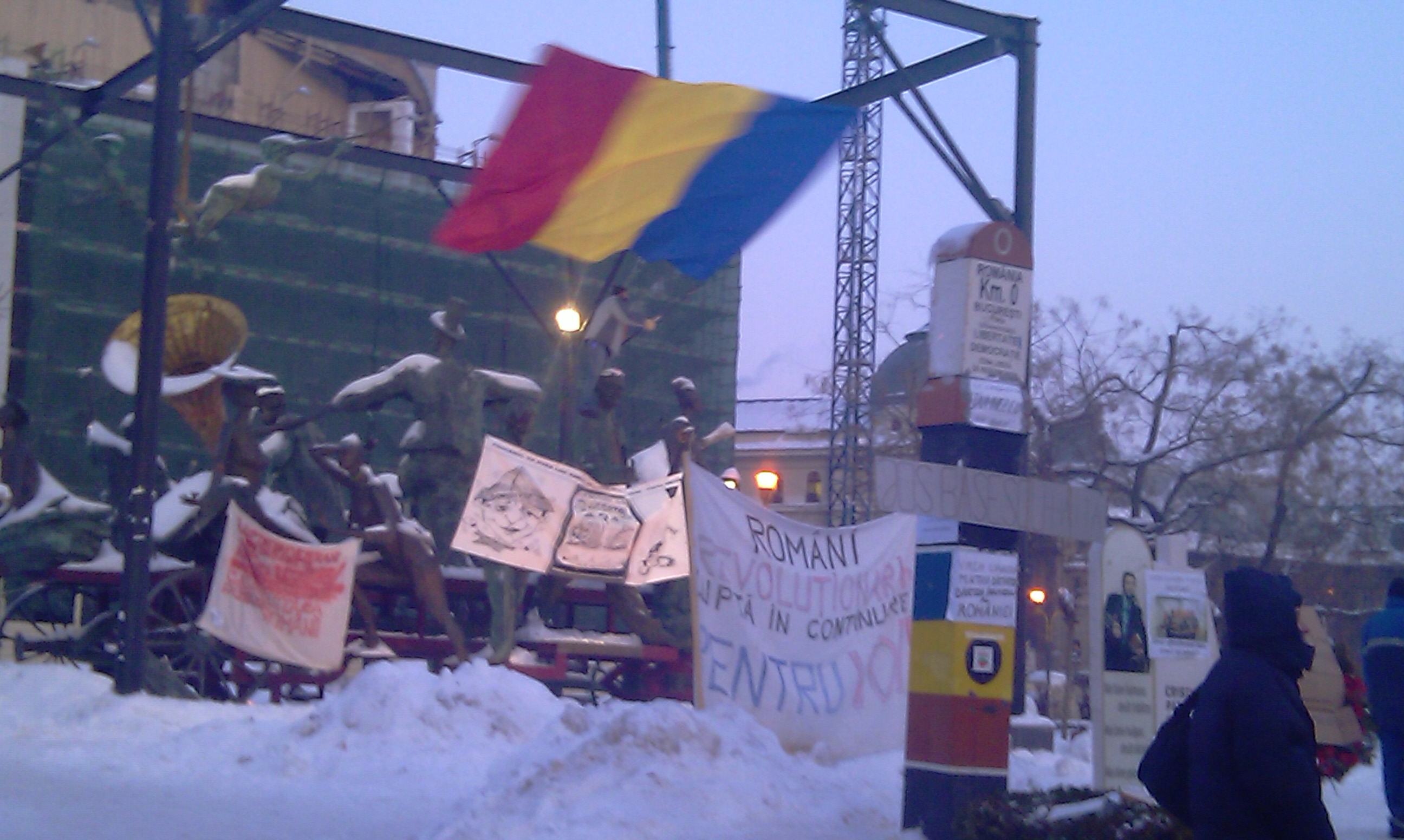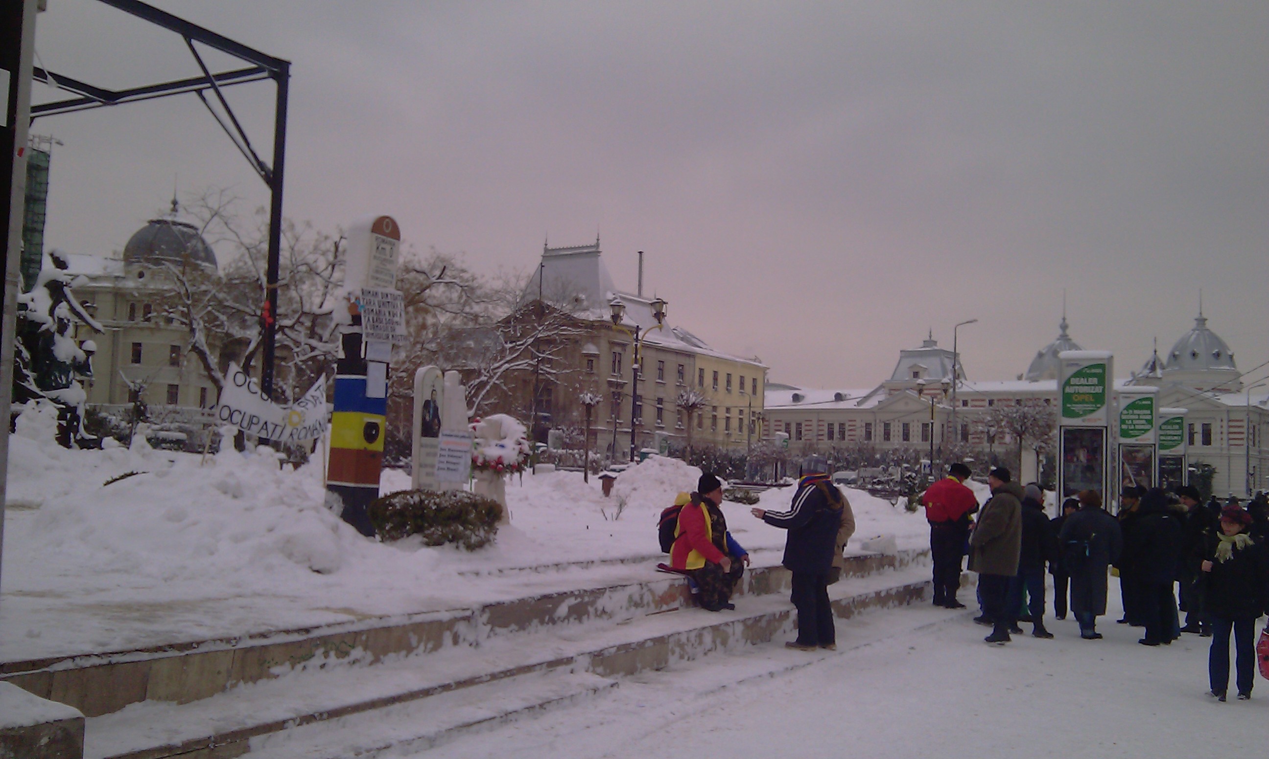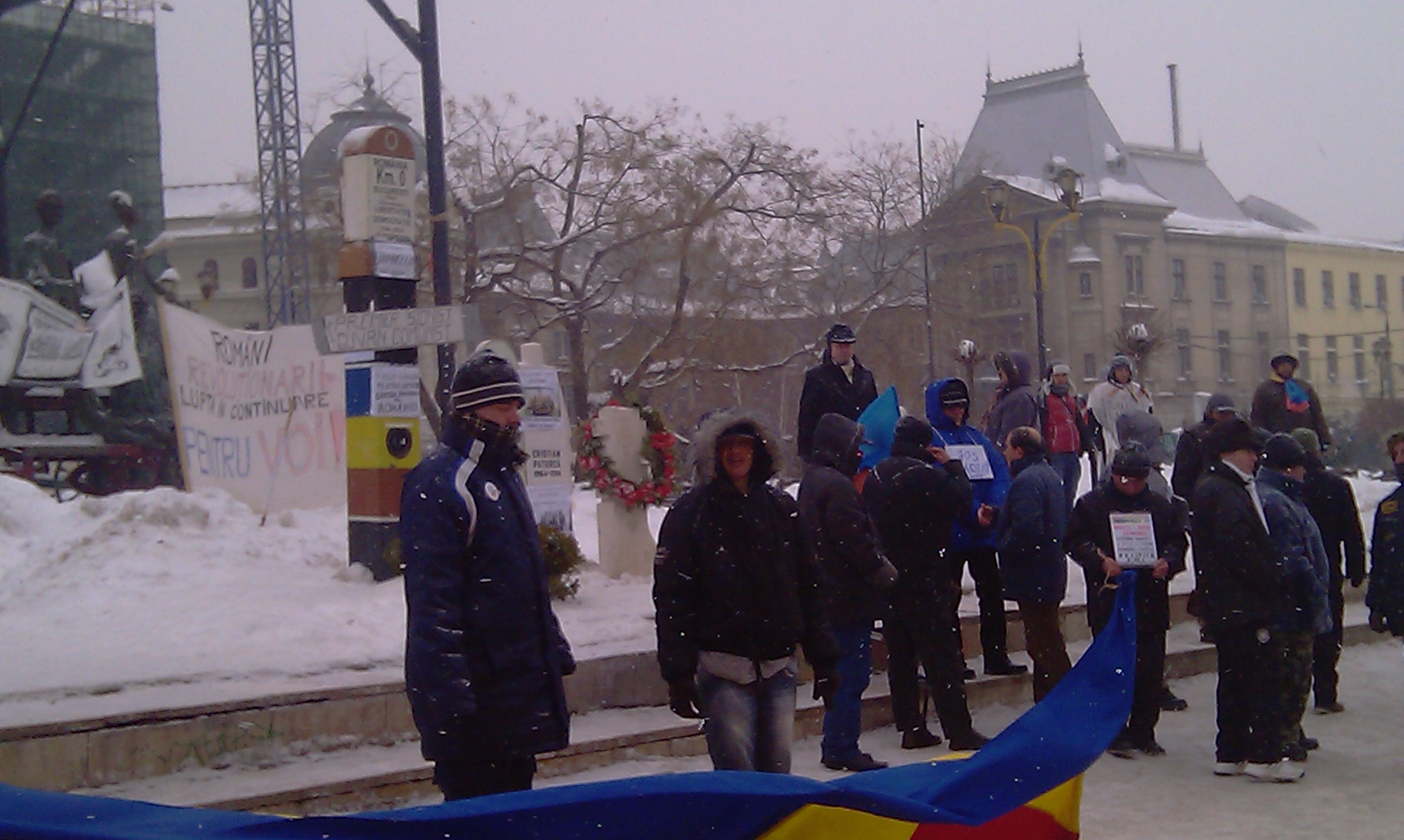 ZIUA 17: Temperatura: -15°C. Protestele au continuat în toată ţara. 1.000 de români la Km.0 al Democraţiei