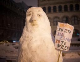 INSIDER: „În ciuda vremii nefireşti de afară, nemulţumirile românilor au fost reprezentate şi astăzi la Km. 0 al Democraţiei şi Libertăţii. În Piaţa Universităţii, protestatarii au ridicat un om de zăpadă care să le ţină locul pentru zilele viitoare. Lipsea mesajul – Vin imediat!”