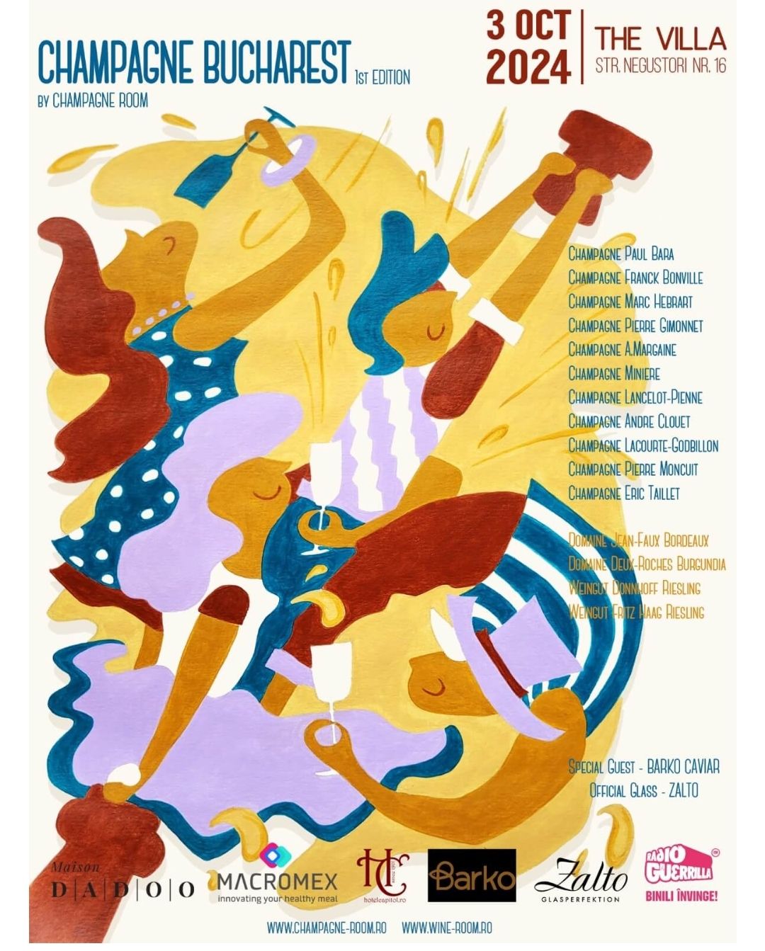 Champagne Bucharest 1st Edition – va reuni pe 3 Octombrie 2024, între orele 10-18, la The Villa (Str. Negustori 16), 10 producători de Champagne din portofoliul nostru și 3 producători de vin.