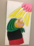 Povestea are şi o latură mai pământeană: nenumaratele scandaluri privind banii strânşi pentru construirea bisericii, ce au disparut fără urmă. Azi biserica e aproape gata având ca ctitor un cunoscut patron de echipă de fotbal obscură. Prima versiune a picturii era cu Becali singur pe perete. Din motive evidente, pictura a fost ștearsă si acum în pictură apar toți cei ce au contribuit la ridicarea bisericii.” SURSA