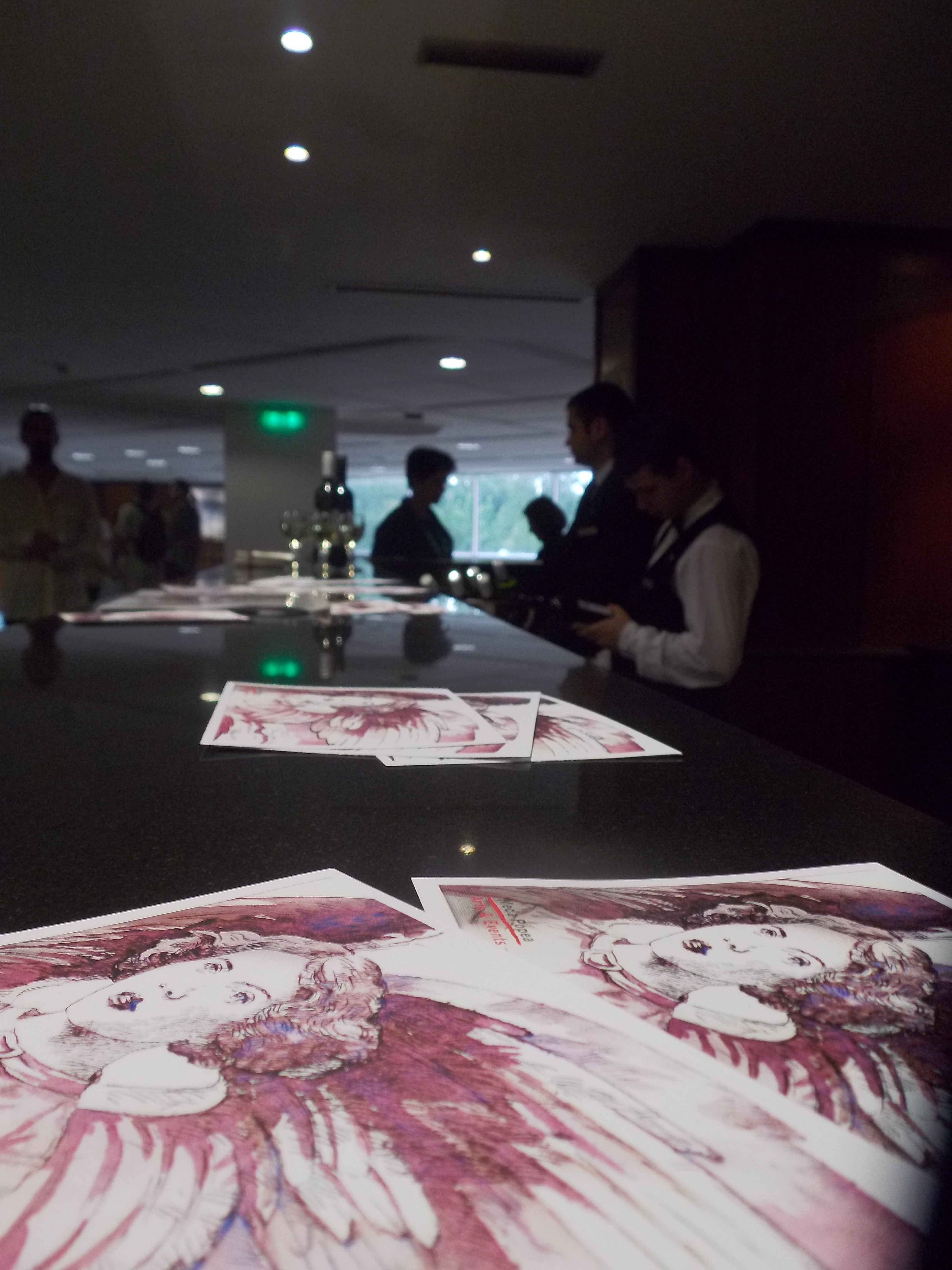 Tudor Plăieşu: “Lucrările, executate în tehnica laviului de vin roşu, cu LacertA Merlot 2010, exploatează valenţele vii şi transparenţele acestei materii lichide naturale şi sunt alegorii ale unor gânduri şi stări, cu rădăcini în mitologiile nordice, atât din zona eropeană, cât şi din zona asiatică. Aceste alegorii au în centru figura feminină, cheia de boltă a vârstelor şi a idealului de frumuseţe. Pata de vin este un pretext de continuă definire a ideii de sacru şi profan, un pretext de redefinire a mitului dionisiac, dar şi a stropirilor rituale prezente în toate culturile vechi, motiv exploatat în bună măsura de câteva importante curente ale artei moderne.” DETALII