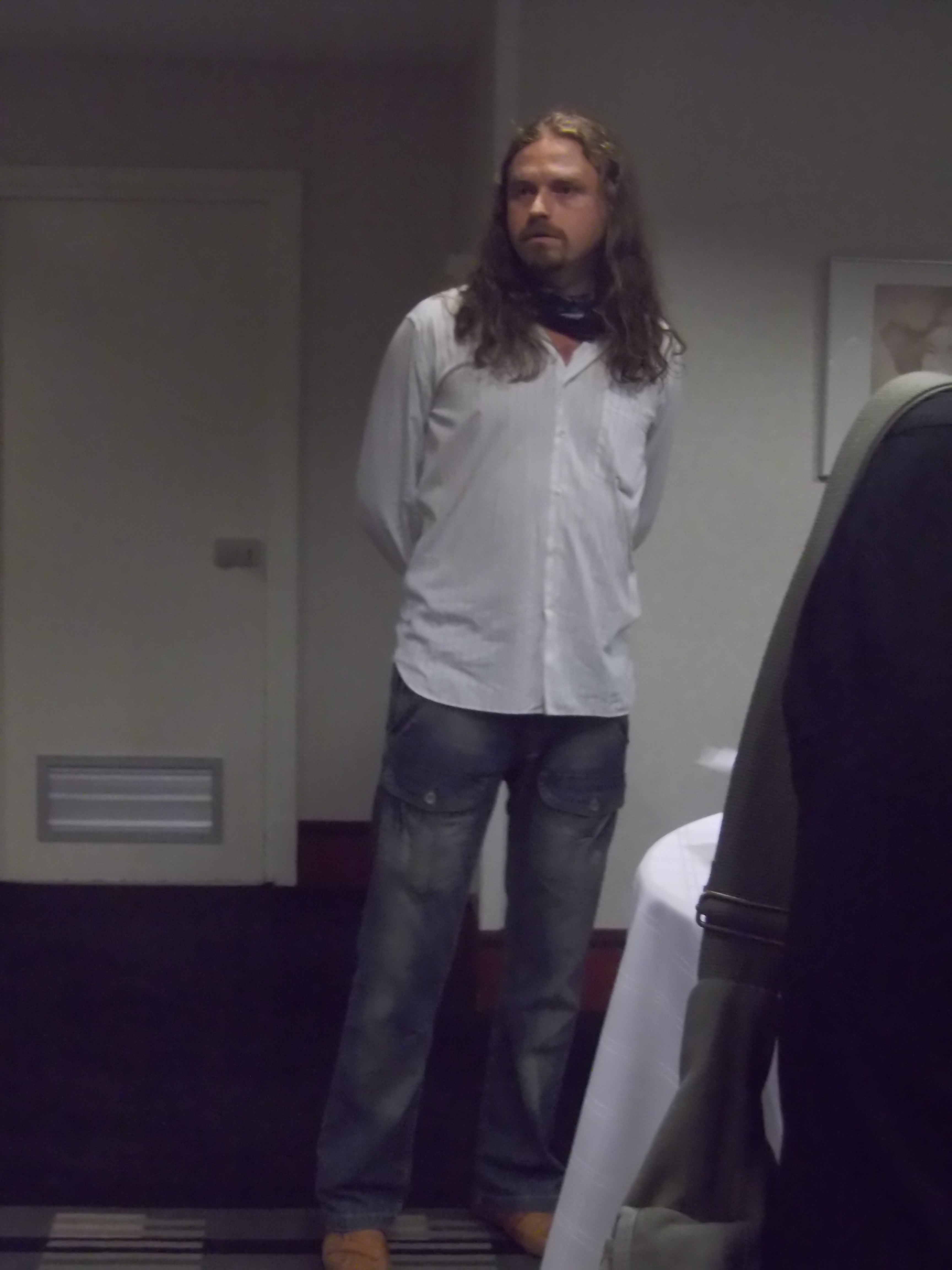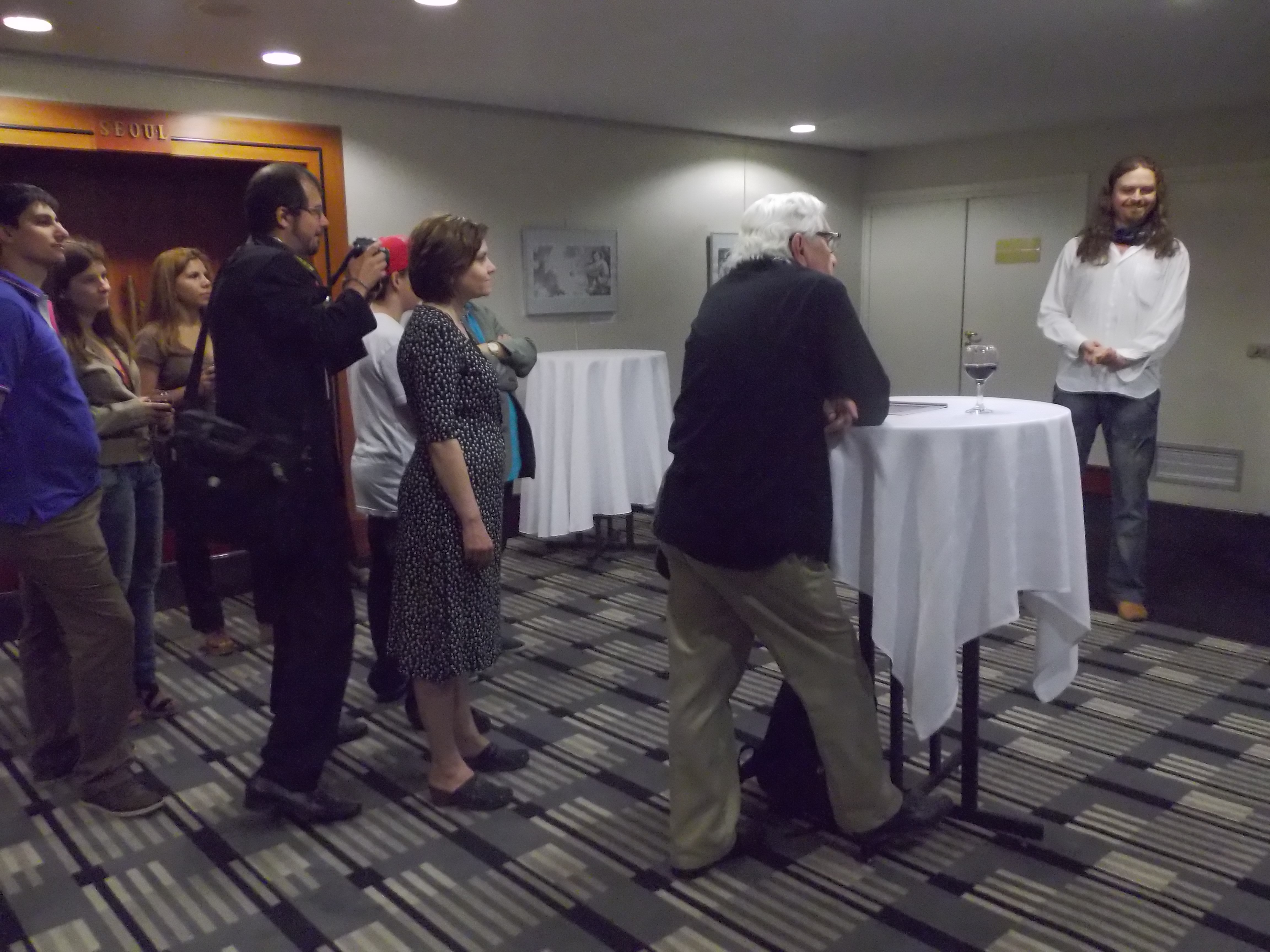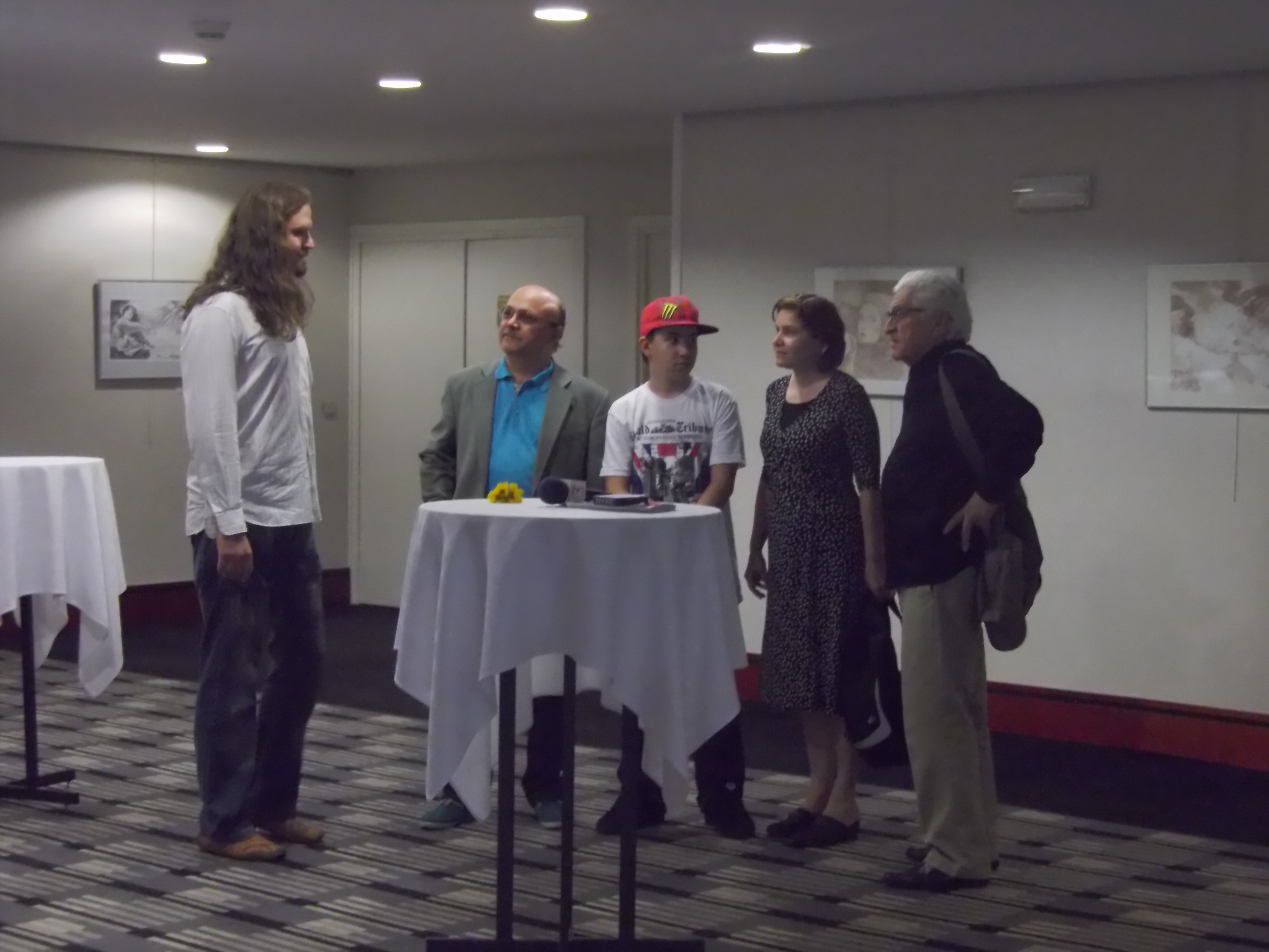 INSIDER: “Picturile moderne, frumoase în sens clasic, au cam dat de furcă celor veniţi la vernisaj şi dornici să le imortalizeze, datorită sistemului de înrămare cu geam, combinat cu multi-spoturile din tavan. Invitaţii au fost serviţi cu vin roşu sau alb. Fără apă! A fost prezent şi scriitorul Tudor Octavian. Pentru degustătorii de artă contemporană, preţurile tablourilor sunt cuprinse între 400 şi 450 euro.”