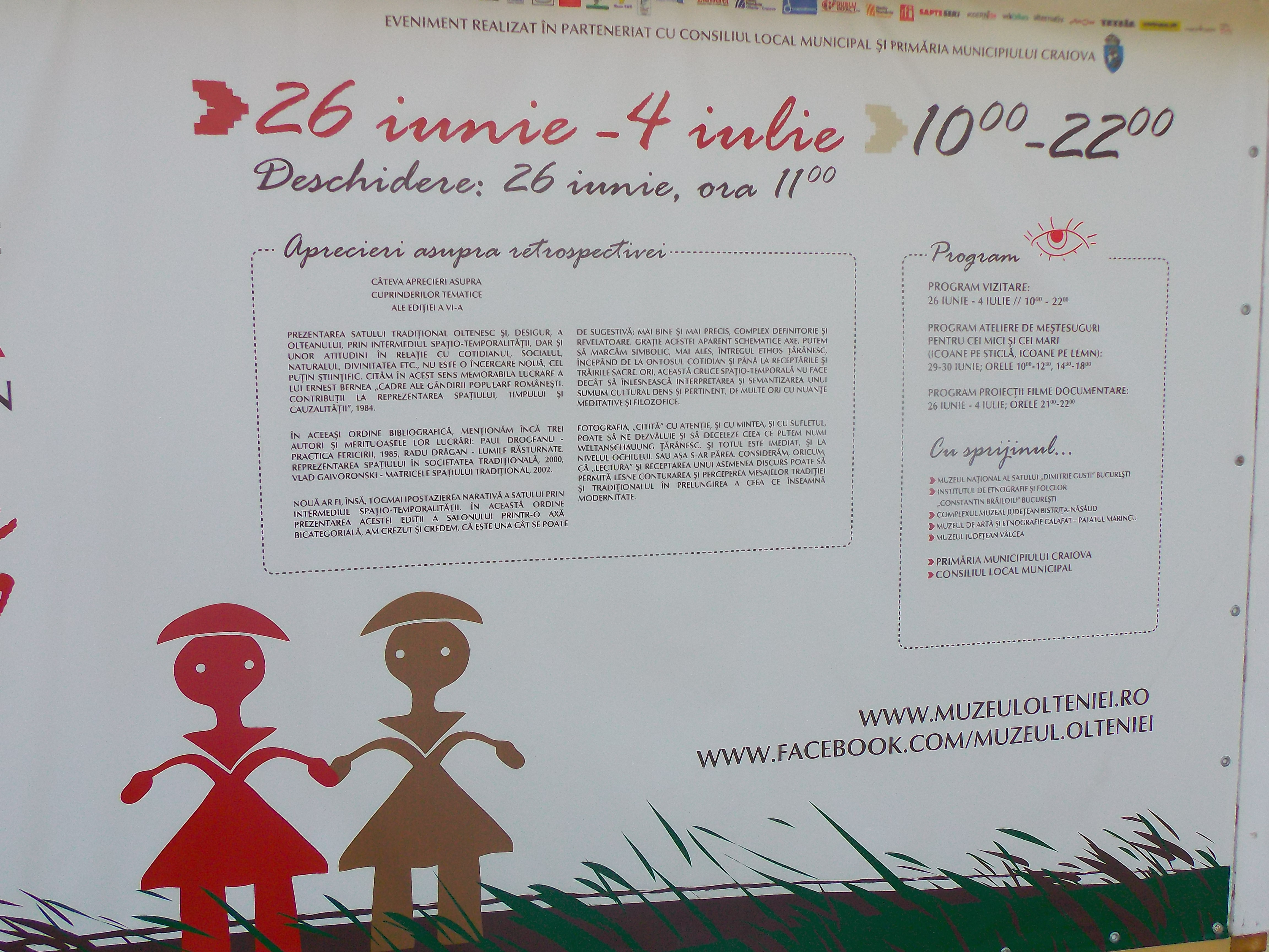 În perioada 26 iunie – 04 iulie, în Piaţa William Shakespeare, Muzeul Olteniei din Craiova a organizat Salonul Naţional de Fotografie-Document, ediţia a VI-a, „Temporalitate, spaţii, expresii şi atitudini în satul oltenesc tradiţional”.
