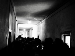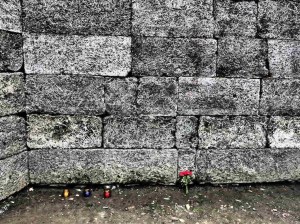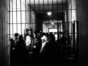 audioghidati, dotați cu căști, etichetati cu ecusoane, ca nu cumva să îi piardă ghizii, care vorbeau în fel de fel de limbi. În Blocul 11, al Morții, senzația devenea chiar terifiantă, pentru că la subsol era un coridor strâmt, și defilam toți în șir indian, pe două sensuri de mers, umăr la umăr, în șiruri neîntrerupte, deși propriu-zis nu era nimic de văzut, că ușile celulelor erau închise. Era doar o perindare funebră și claustrofobă.