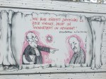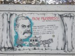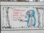 INSIDER: „Pe Calea Văcărești (București sector 4) venind dinspre Șoseaua Mihai Bravu, pe partea dreaptă, înainte de a ajunge la Sun Plaza pe câteva sute de metri se întinde un gard plin de aforisme și cugetări, vorbe de duh ale unor persoane și personaje celebre, foști primari ai Bucureștiului, oameni de vază ai timpurilor trecute, mari actori, poeți, scriitori români dragi sufletului noastru sau pur și simplu farmecul anonimului prefect. Marea majoritate se repetă de câteva ori ceea ce nu ar deranja neapărat, păcatul mare fiind faptul că de cele mai multe ori pe lângă se trece în „fugă” cu mașina, tramvaiul, autobuzul nefiind o zonă tranzitată pietonal. Schițe: de_senator Baciu.
