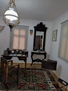 Alături este biroul pirogravat, la care Topîrceanu aşeza pe hârtie inspiraţia din zilele în care colinda şi observa natura, căci în şederile sale la Nămăeşti a compus multe dintre poeziile trimise, apoi, spre publicare la reviste literare. Fiecare detaliu din camera de lucru şi din clădire redă atmosfera în care a trăit şi a scris Topîrceanu. Spre stradă este dormitorul cu mobilă de epocă şi cu ţesături populare unde, destul de lesne, poţi intui locul de odihnă al poetului. Cele două încăperi sunt camerele de la etaj, dispuse simetric faţă de antreu, despărţite de parter printr-o scară interioară ţărănească, din lemn. Jos, o adevărată expoziţie te poartă printre ani cu fotografii de familie, cu multele scrisori către ai săi şi către prieteni, cu documente originale şi facsimile.