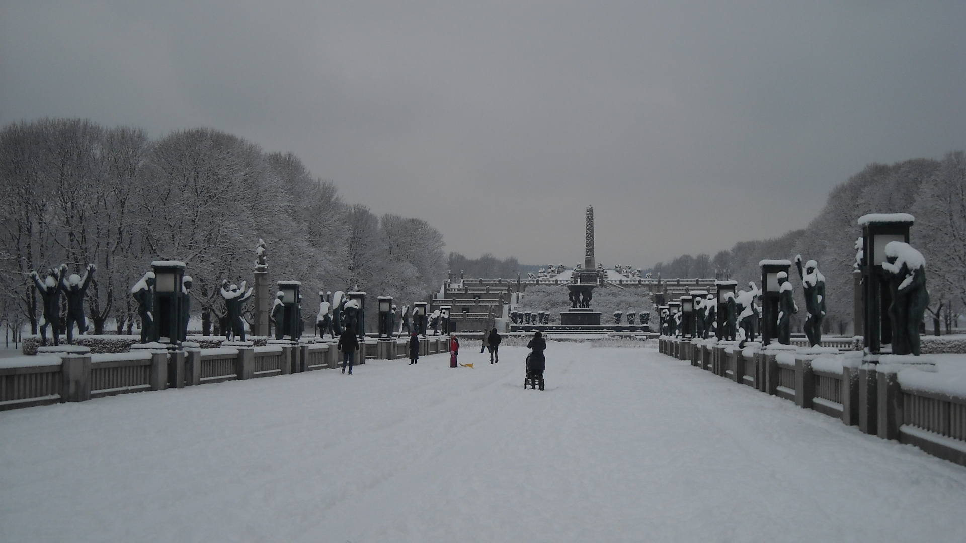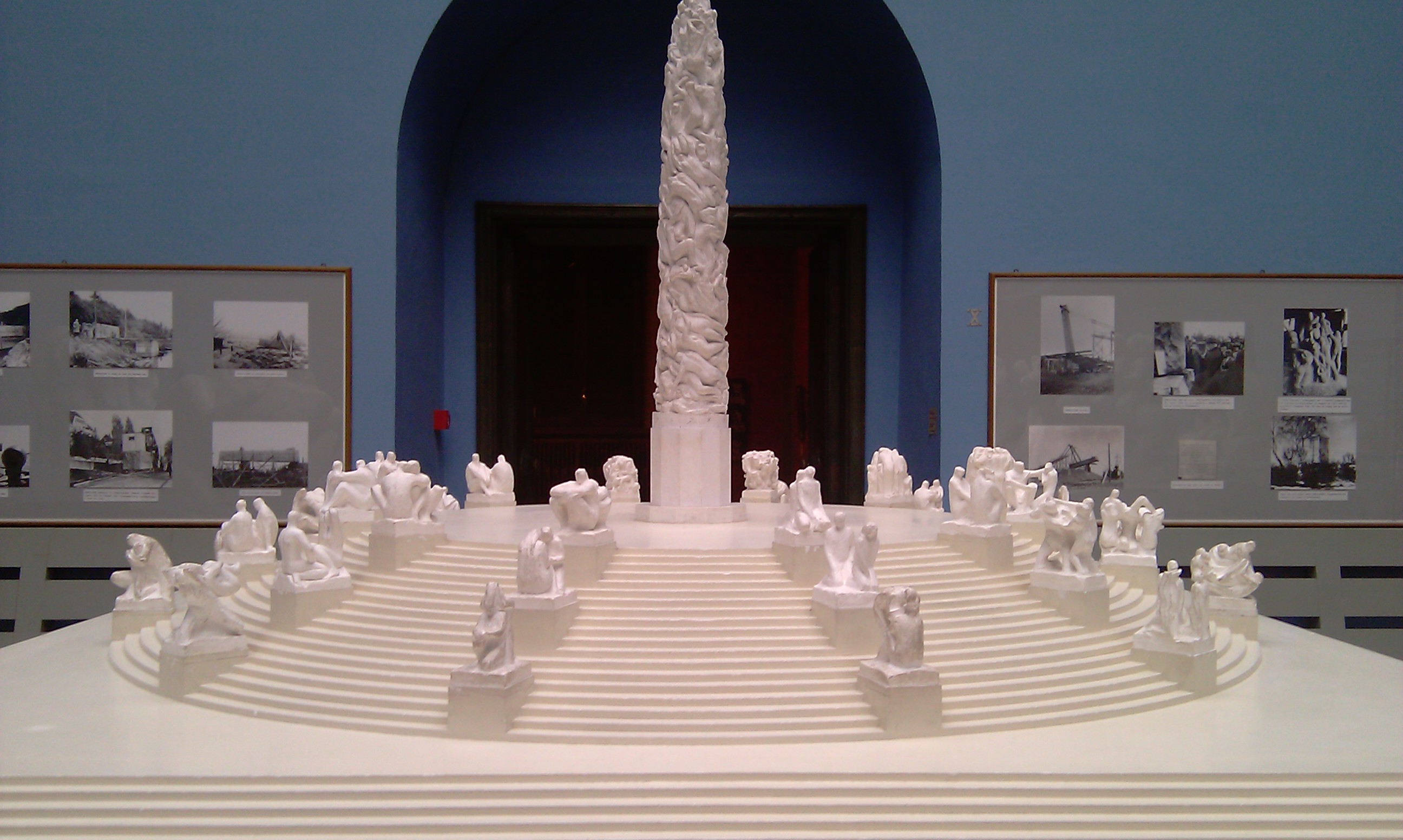 condiţiei umane, de la vârsta copilăriei până la cea a bătrâneţii (îndrăgostiţi înlănţuiţi, părinţi jucându-se cu copii lor, senine cupluri în vârstă, oameni luptându-se, iubindu-se, suferind, învăţând, mâncând sau dormind). Sculpturile sunt grupate în 5 secţiuni, pe o lungime de 850 metri. Piesa de rezistenţă a ansamblului este „Monolitul” – sculptură cu o înălţime de 14.12 metri, realizată dintr-un singur bloc de granit din care se evidenţiază 121 de figuri umane înlanţuite în lupta pentru existenţă. Alte sculpturi: „Băieţelul furios”, „Ceasul solar”, „Roata vieţii”.