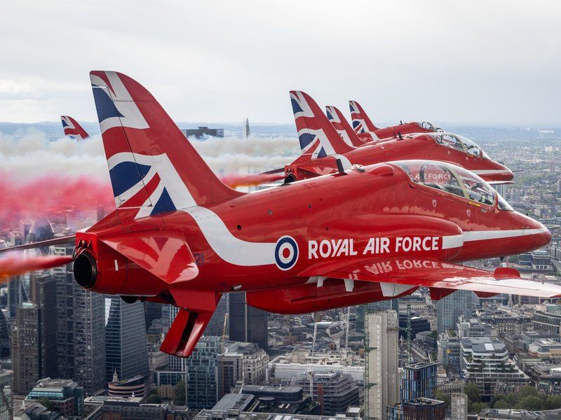 Trailing patriotic colours, the Red Arrows completed a spectacular London flypast to mark 80 years since the end of the Second World War in Europe.??Jets from the Royal Air Force Aerobatic Team were cheered by huge crowds lining the Mall as the aircraft flew above the capital city and Buckingham Palace for the VE Day 80 event.??The flypast was part of commemorations and a military procession, featuring 1,300 members of the Armed Forces.??The events were in tribute to the millions of people across the UK and Commonwealth who served in the Second World War, telling the stories of those who fought, the children who were evacuated and those who stepped into the essential roles on the Home Front.??Flying from their home base of RAF Waddington, Lincolnshire, the Red Arrows??? distinctive Hawk jets ??? alongside Typhoon aircraft ??? provided a colourful and striking finale to the flypast, streaming red, white and blue smoke trails.? Squadron Leader Jon Bond, Red 1 and Team Leader of the Royal Air Force Aerobatic Team, said: ???The Red Arrows were honoured to be part of the VE Day commemorations, which are so important in order to reflect on the service and sacrifice made by so many people to defend our values.?????Eighty years later, members of the Armed Forces remain inspired by the Second World War generation and we aim to continue their great example.?????The Red Arrows are in the final weeks of pre-season preparation, with a packed summer of events getting underway at the end of the month.??The team showcase the excellence of the RAF and represent the United Kingdom both at home and overseas. ??The team consists of pilots and more than 100 highly-trained support personnel. ??Each of the pilots has previous fast-jet, operational experience flying the Tornado, Typhoon or Harrier, enabling the RAF to secure the skies and protect the nation and its interests, 365-days a year. The team is based at RAF Waddington in Lincolnshire.